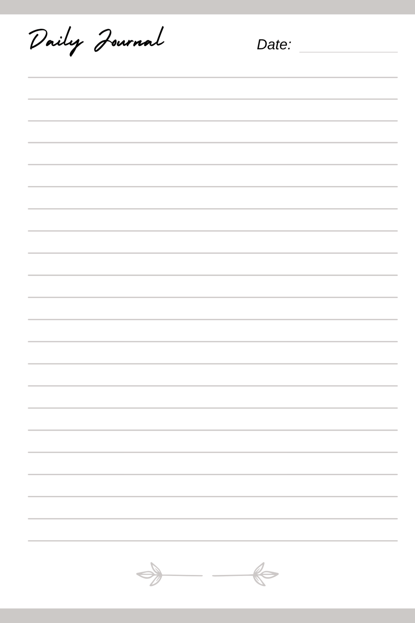 - Lined journal pages with space for the date plus a roomy notes section for reflections, wins, and intentions