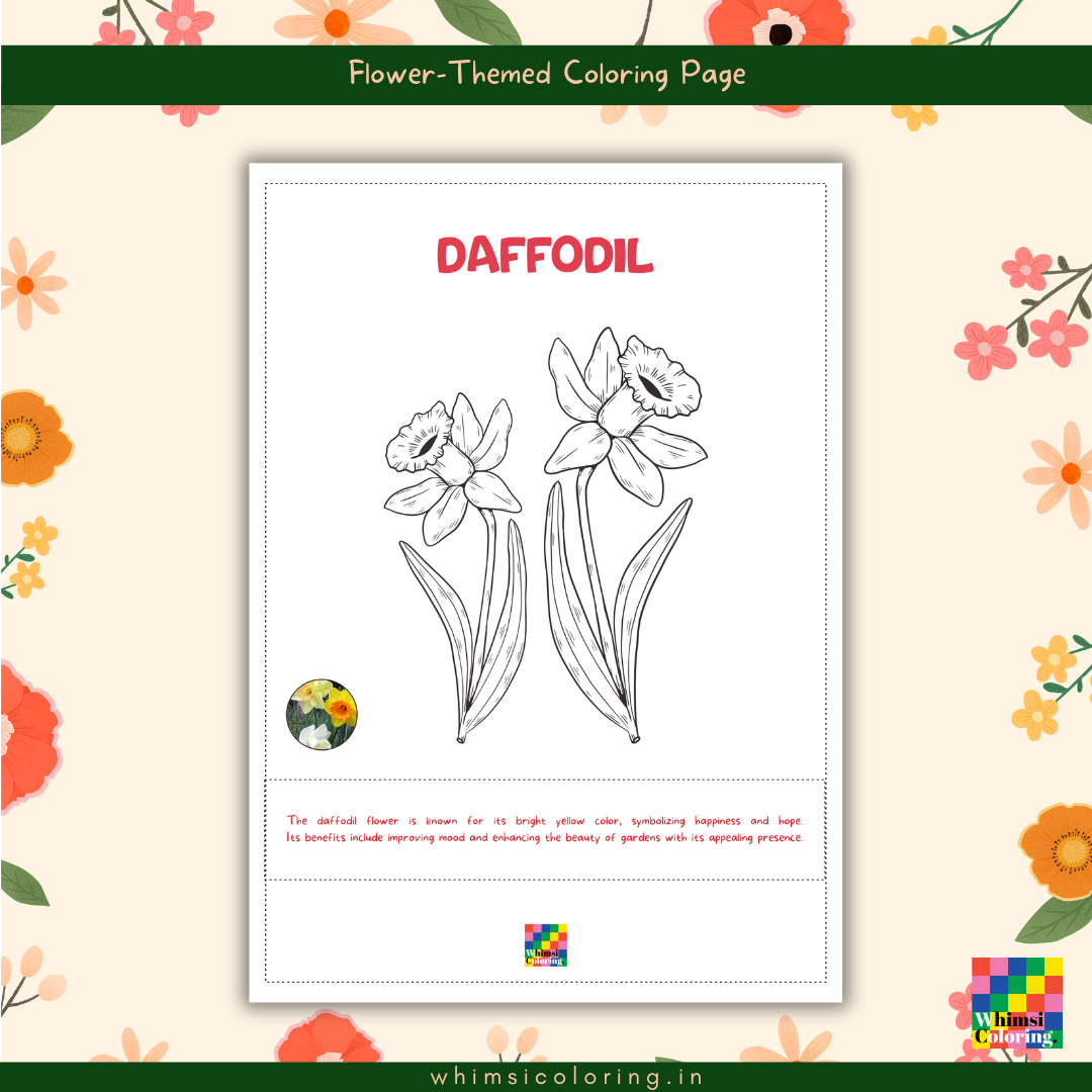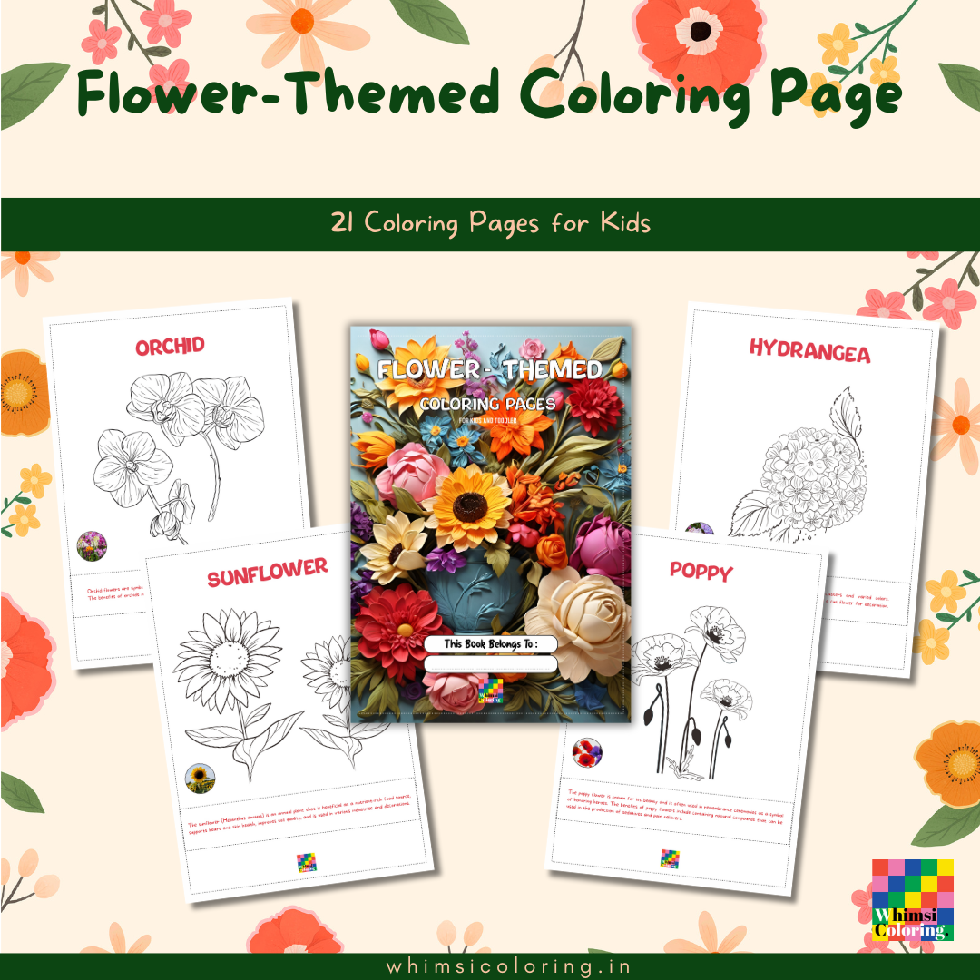 These Flower-Themed Coloring Pages not only offer coloring fun for children but also provide learning about the benefits and explanations of each flower.