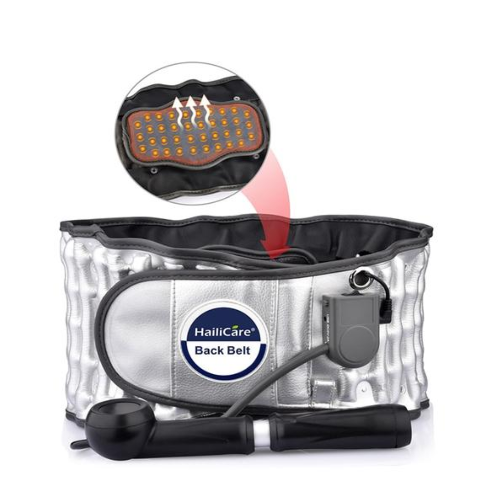 The Decompression Belt stretches and retracts the lower back as it inflates with air. This gentle traction helps decompress the spinal discs. Decompression helps relieve pressure off pinched nerves, degenerative, herniated, and bulging discs.