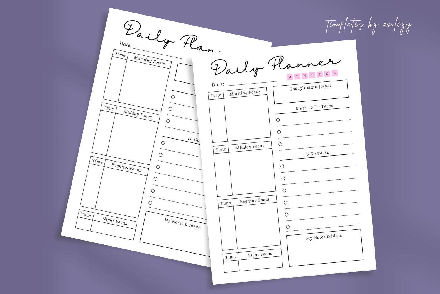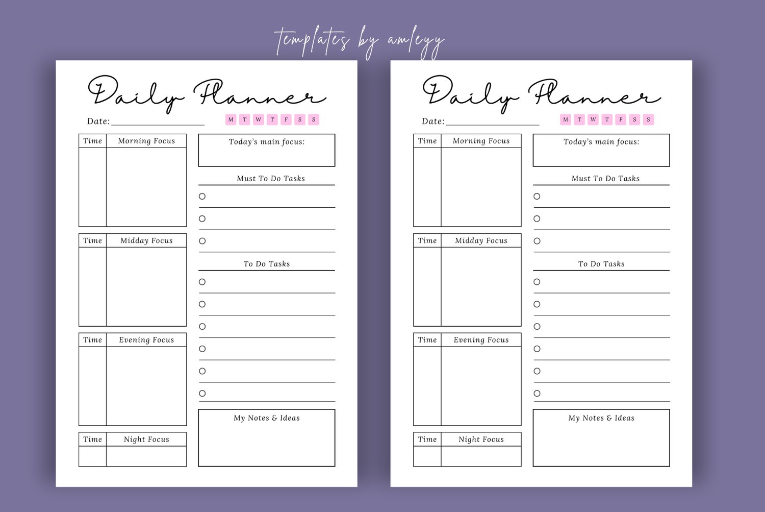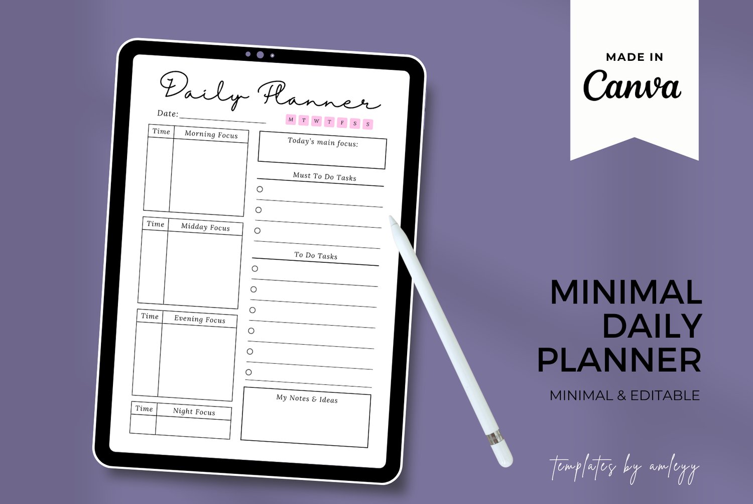 Elegant Daily Planner Printable Template | Canva Editable Focus & Task List | Morning Evening Schedule | Instant Digital Download
