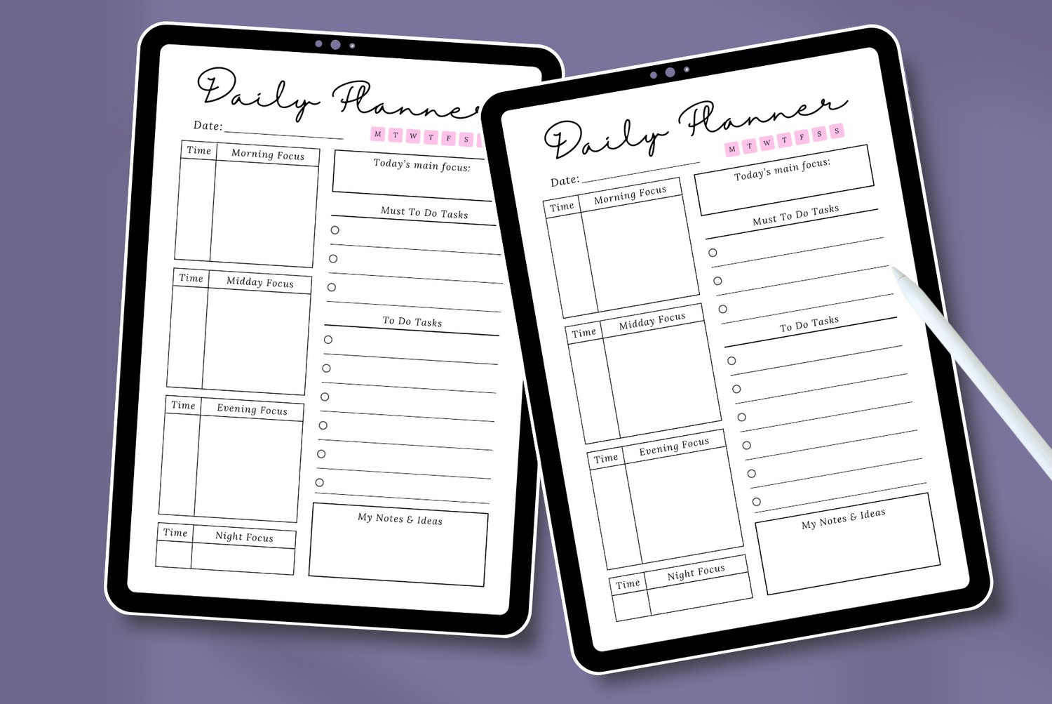 Elevate your day-to-day structure with this Elegant Daily Planner Printable Template. Featuring a feminine, clean design with stylish script font accents, this planner is meticulously organized to help you conquer your schedule, prioritize tasks, and capture focus throughout your day.