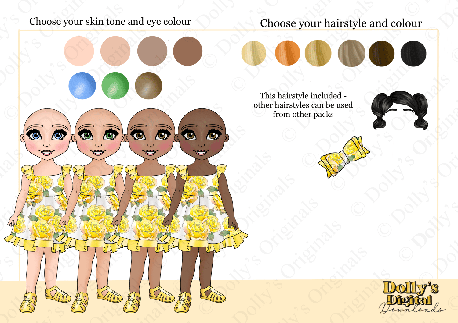 Instant digital download of our Yellow Rose Print Dress Toddler Girl Bundle PNG (19 PNG’s)