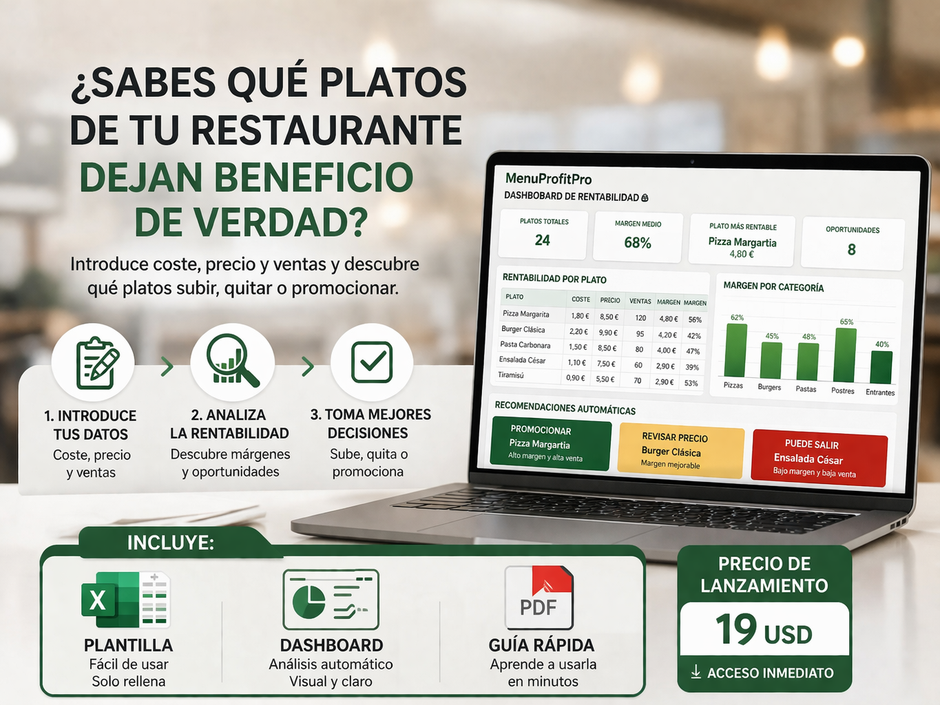 En pocos minutos tendrás una visión mucho más clara de tu carta y podrás tomar decisiones con más criterio sobre rentabilidad, visibilidad y margen.