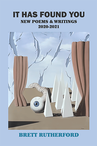 BRETT RUTHERFORD. IT HAS FOUND YOU. New Poems and Writings 2021. Neo-Romantic American poet Brett Rutherford, writing from pandemic isolation in Pittsburgh, finished 35 new poems and ten prose tales and sketches from mid-2020 to the end of 2021. New works here depict a terrifying incubus in the trenches of World War I; the intercepted thoughts of dying COVID victims; the tug of war between planets during the Jupiter-Saturn Great Conjunction; a MAGA plot to outlaw Halloween; visions at The Pantheon and at the walls of Troy; and a wild dream of a malevolent Aztec deity titled “The God Who Uses Cats As Slippers.”