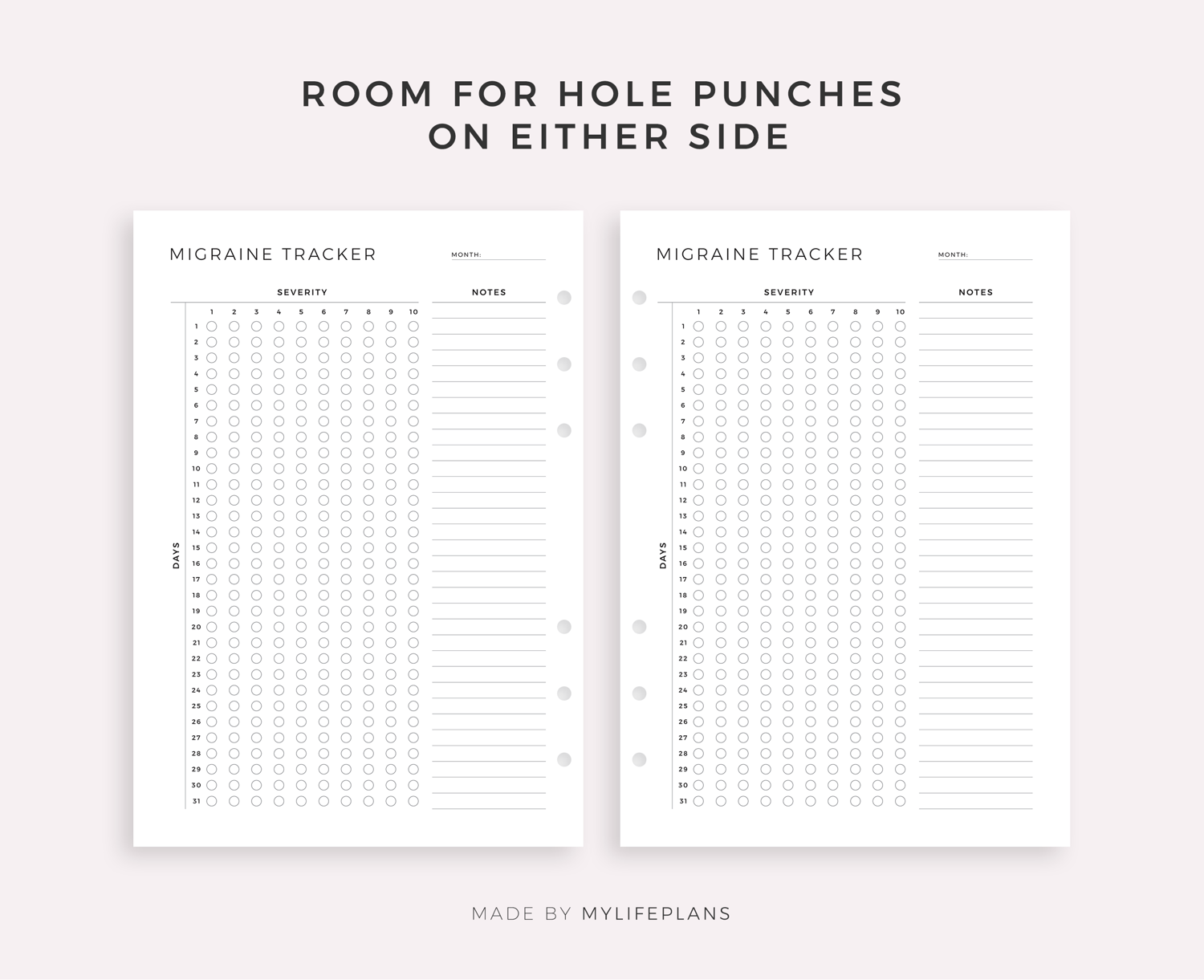 This is a printable monthly migraine tracker — just download, print, and start using it right away.