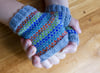 Gauge (in pattern): 9 stitches per inch and 10 rows per inch. Gauge isn’t crucial for this pattern, although I suggest going up a needle size if your gauge is tighter than this, because the mitts would end up pretty tight.