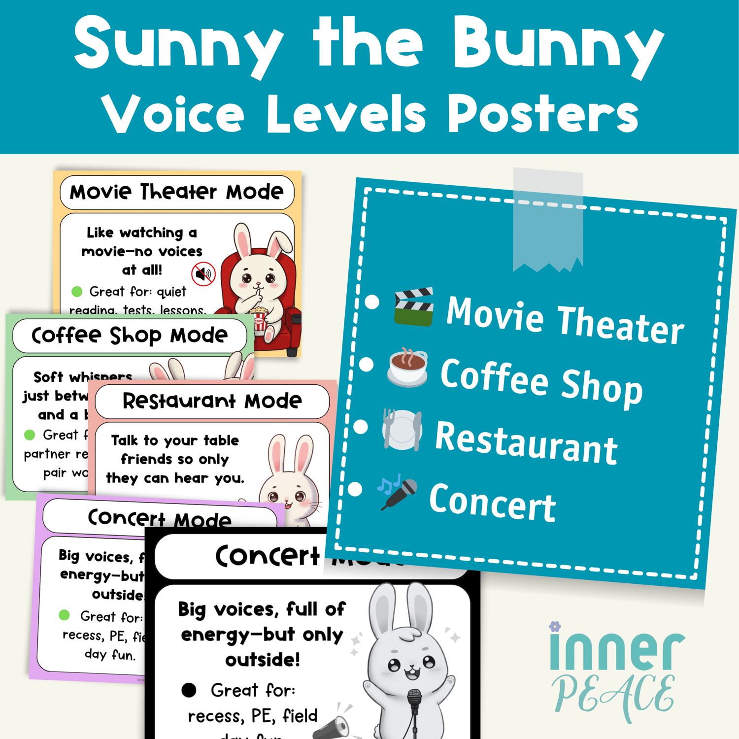 Make classroom management easier and more engaging with this Sunny the Bunny Voice Levels Poster Set. Each poster features the lovable Sunny character in different settings to help students understand and practice the right voice for the right time.