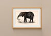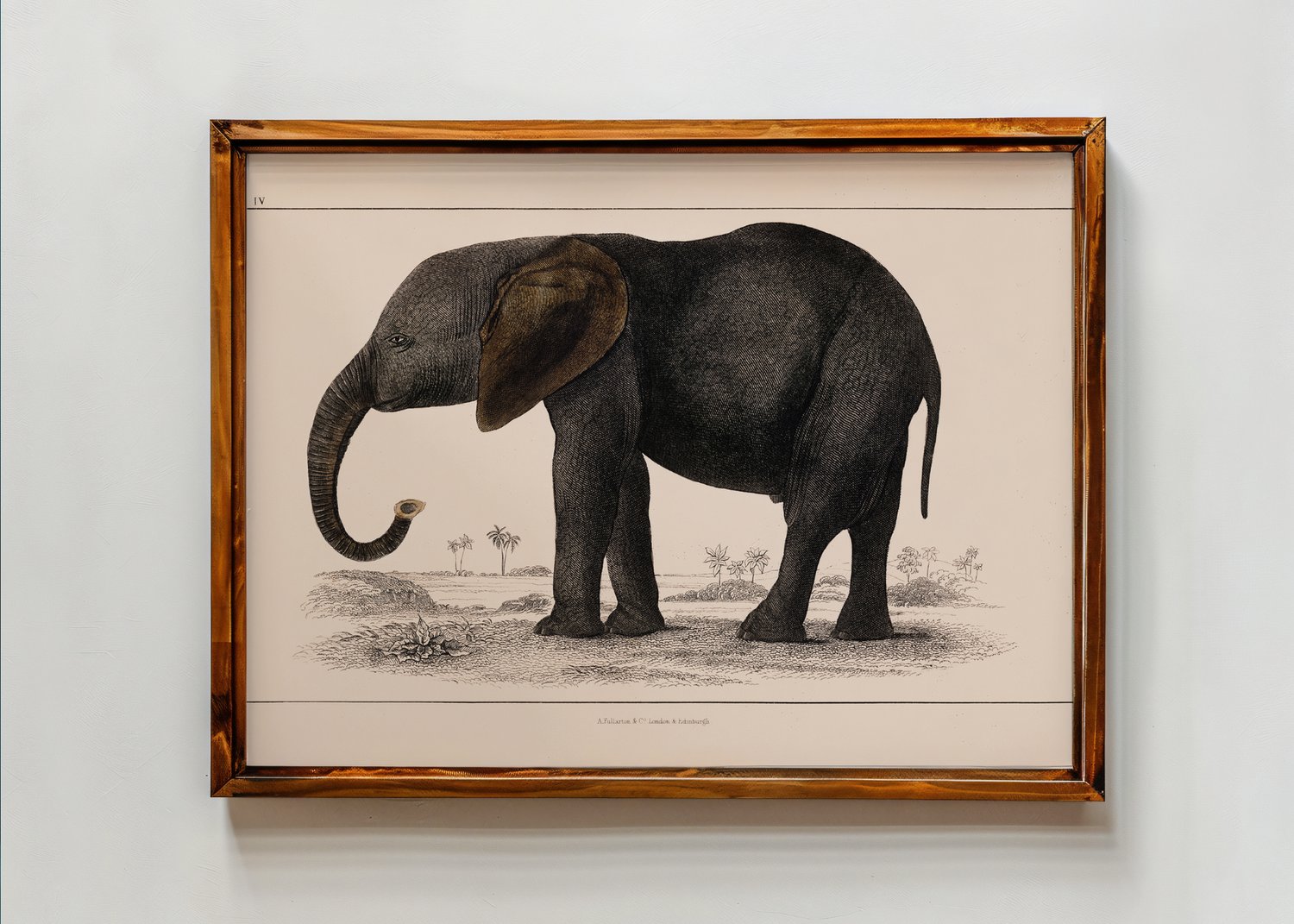 Elephant— With deliberate strokes and shaded patience, the elephant emerges—an ancient presence rendered in charcoal grace. Its massive form is softened by gentle light, each wrinkle etched like the rings of a fallen tree, telling stories of time, endurance, and quiet memory. The tusks curve like moonlit scythes, proud yet worn, and in the eyes, there is something more than intelligence—there is remembrance.