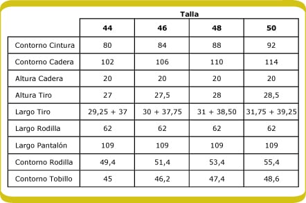 Verifica las medidas de cada talla en el cuadro adjunto.