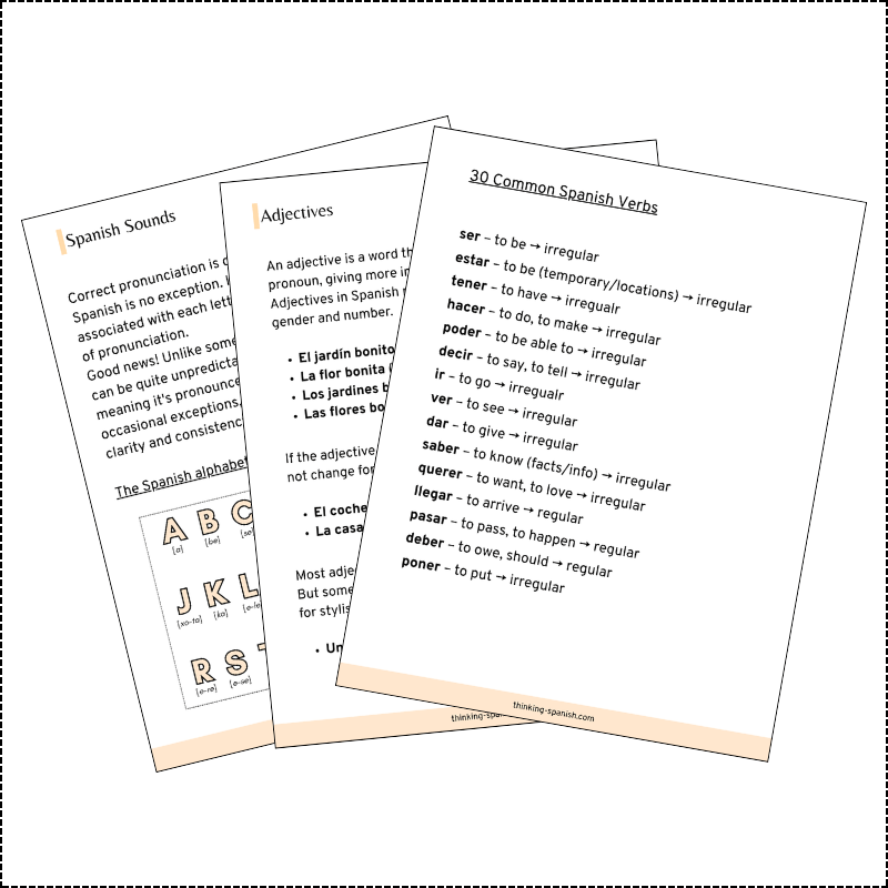 This free resource introduces the most essential basics of Spanish in a clear and simple way, so you don’t feel overwhelmed when starting your learning journey.
