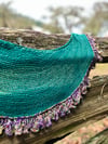 I designed this shawl while envisioning my favourite Kahlo painting, Me and My Parrot 1941. The Psitta Shawlette is a top down crescent shawl, with a ruffled lace edging that is added on sideways similar to an icord cast off. Please note that in the lace section the st count changes each row.
