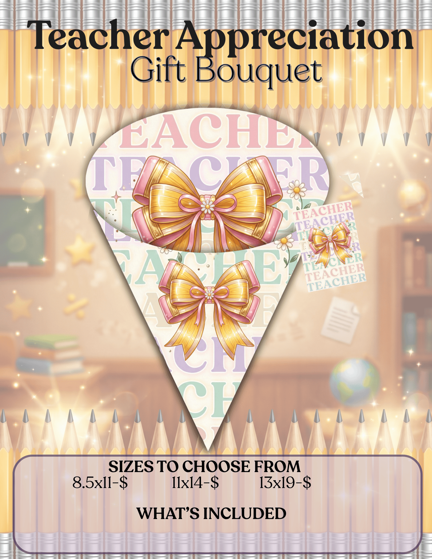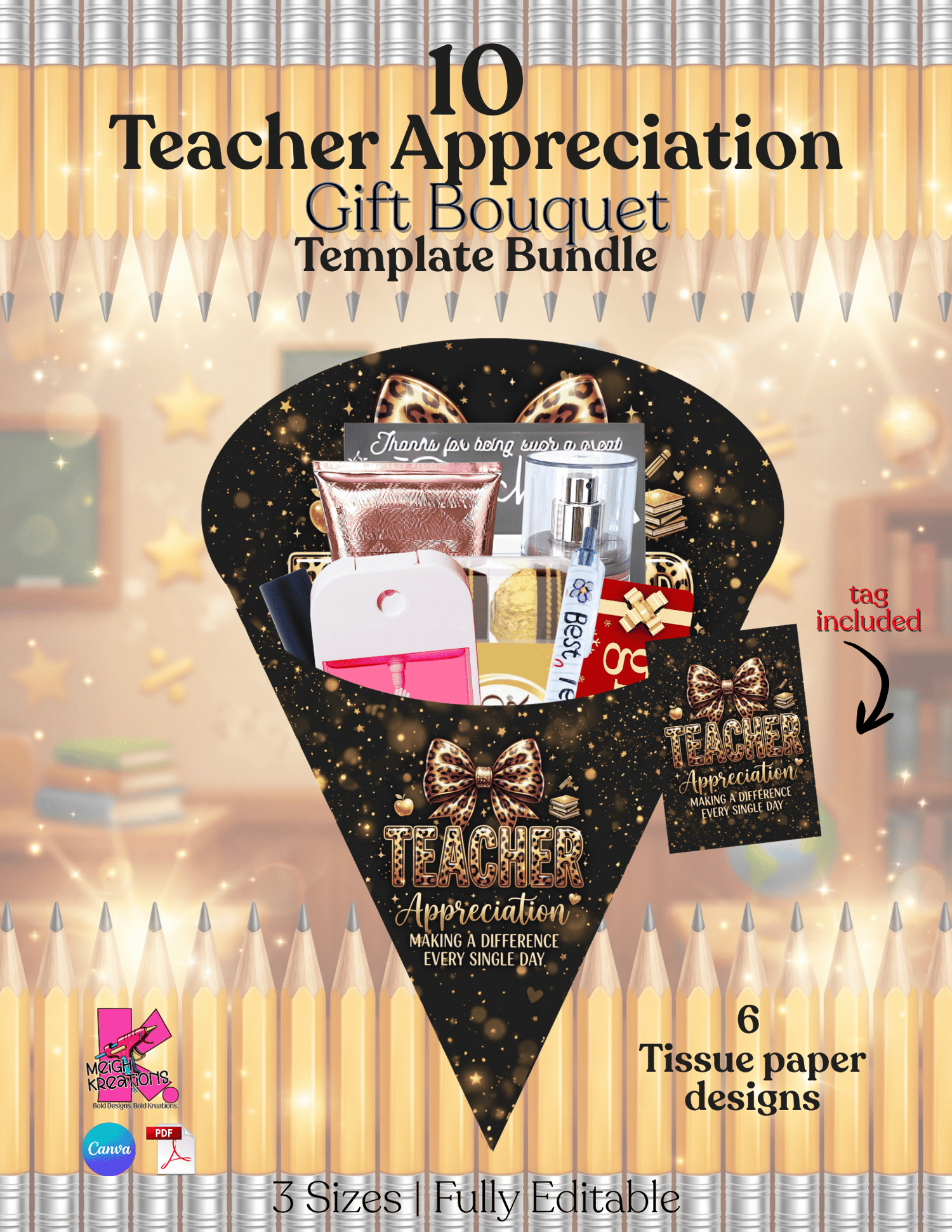 Teacher Appreciation Gift Bouquet and Tissue Paper Template Bundle