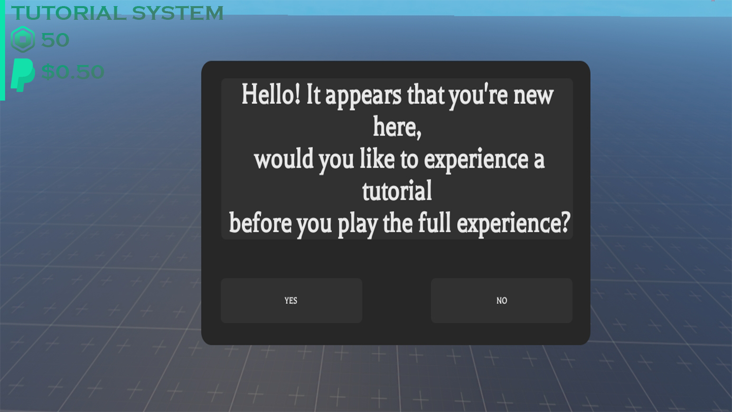 ・ By clicking "Yes" you will be teleported to whereever you place the part named "TP" inside the "TutorialTP" Model