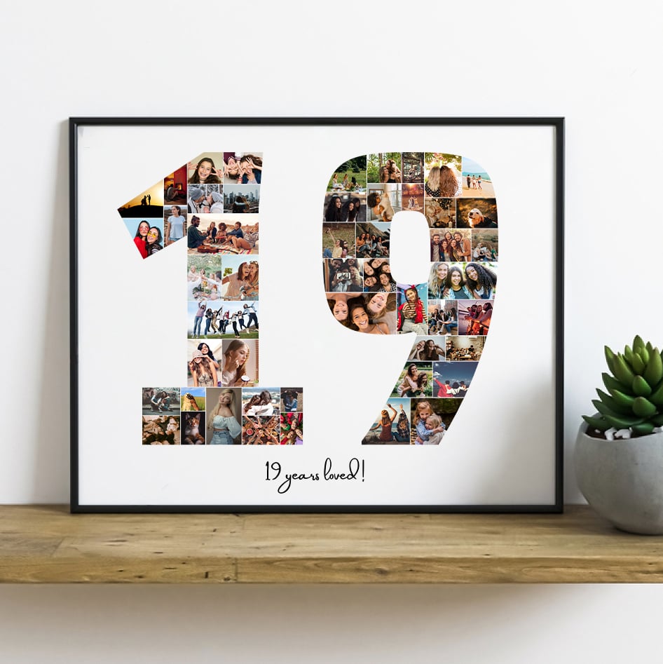 EDITABLE 50 photos, Custom 19th Birthday, 19th Anniversary Photo Collage Template Poster, 19 years gift, Personalized Special Gift