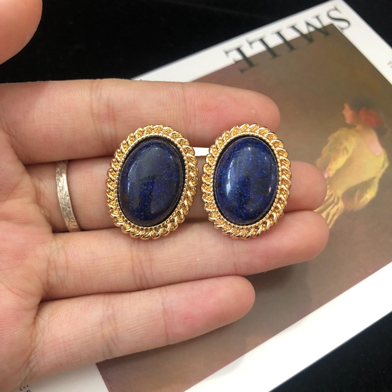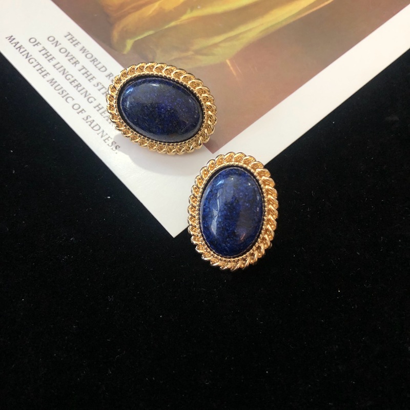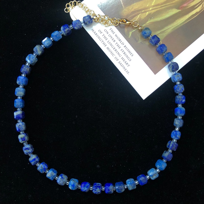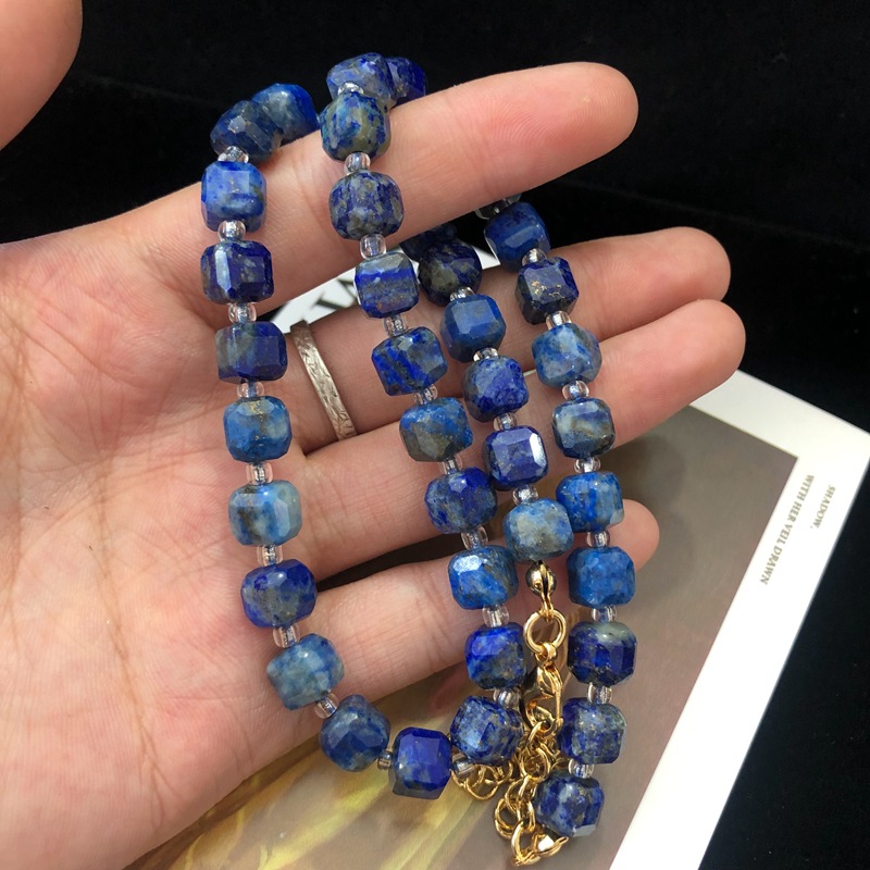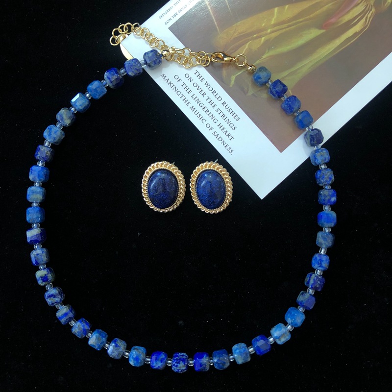 Vintage natural lapis lazuli plated real gold handmade beads stud earrings necklace set