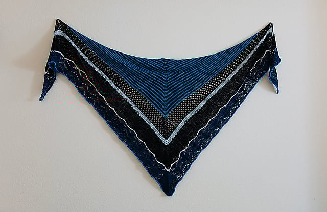 Shinkai shawl is a triangle shaped shawl with various stitches.