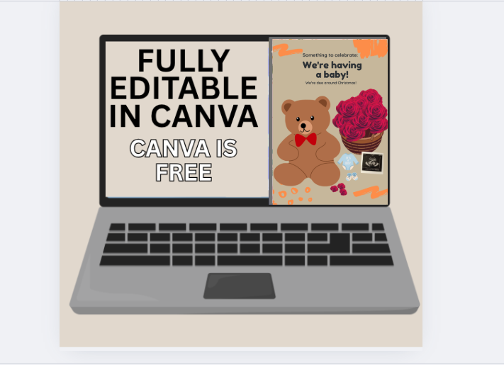 Valentines Pregnancy Announcement: Floral Baby Reveal, Editable Canva Template (Digital Download
