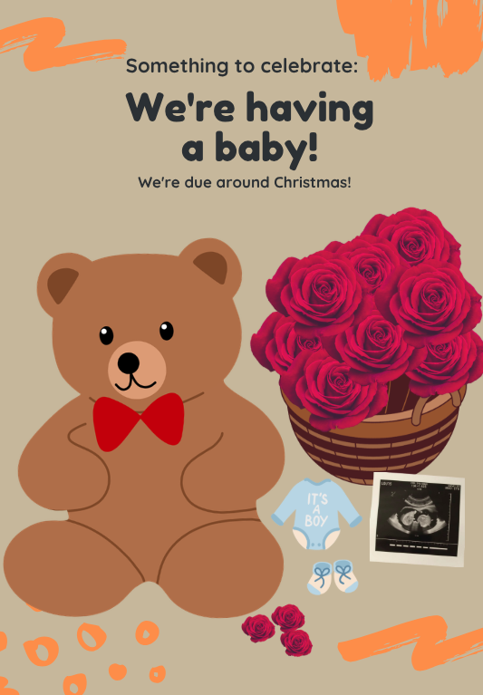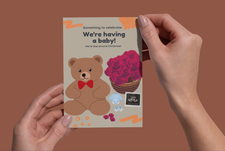 Unveil the joys of impending parenthood with our delightful Pregnancy Announcement cards. Each card is a harmonious blend of charm and excitement, meticulously designed to share your magnificent news with loved ones. Imagine the palpable thrill as they open an envelope to discover the beautifully crafted illustration that graces the front, capturing the essence of new beginnings. The insides are styled with elegant fonts and tender messages, ensuring your announcement resonates with the heartfelt emotion of this precious journey. As you prepare to embark on this new chapter, our Pregnancy Announcement cards serve as a timeless keepsake, reflective of this miraculous time in your life. Announce in style and let your joyous declaration echo in their hearts. Like the whispers of the first heartbeat heard, each announcement is designed to envelop recipients in warmth and love.