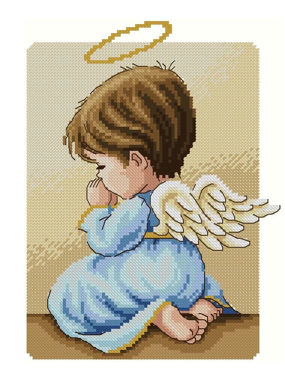 Angel Boy Praying (Blue) - Cross Stitch PDF Downloadable Pattern