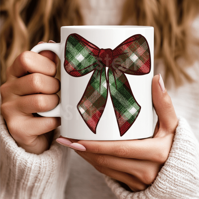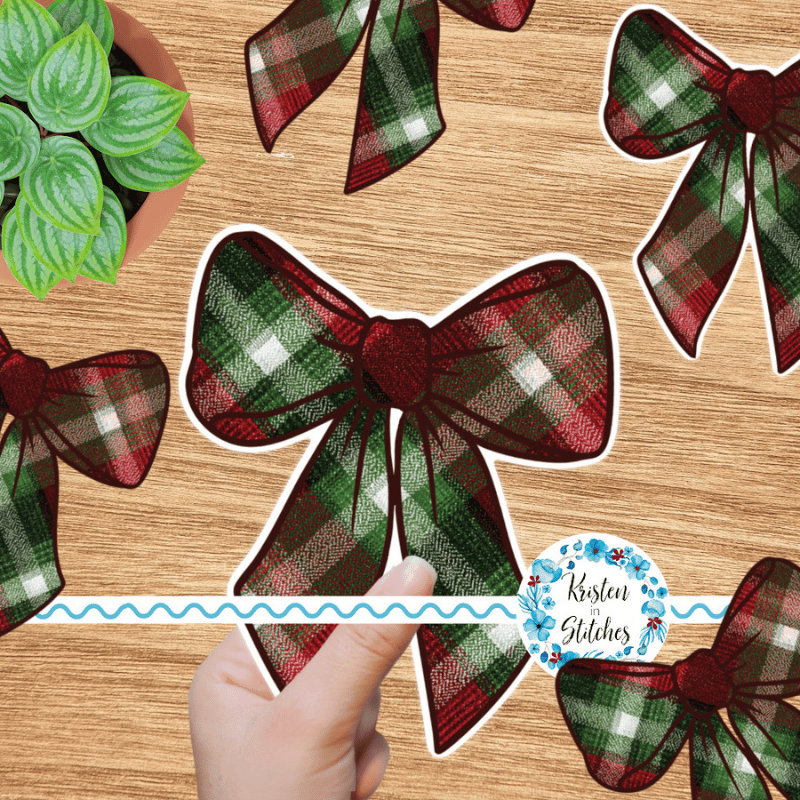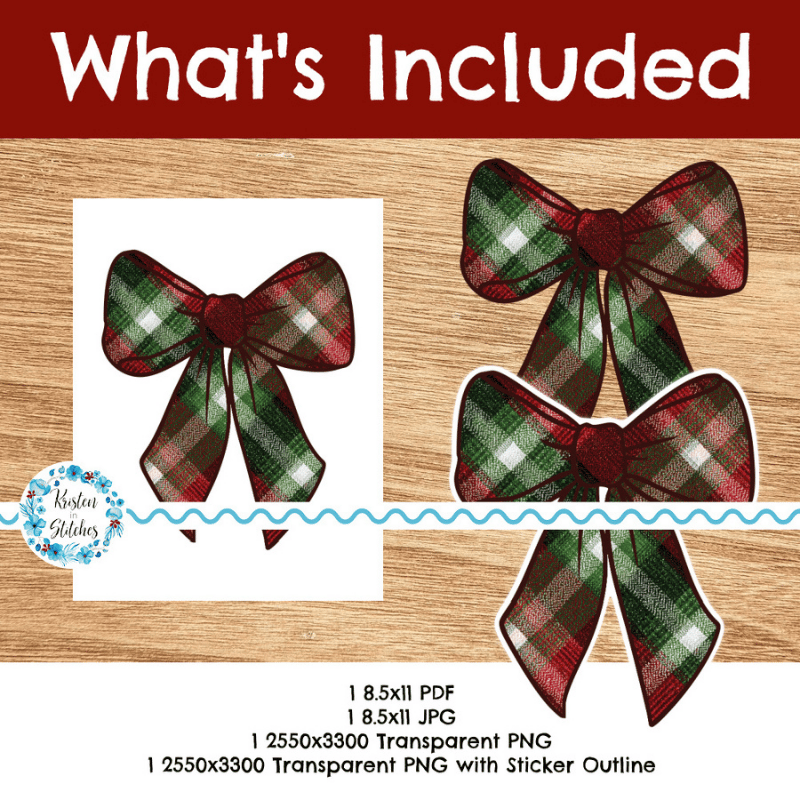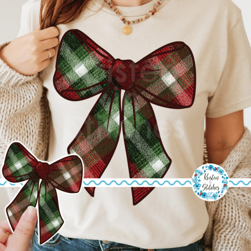 Christmas Classic Plaid Bow PNG, Large Printable Sticker or DTF Iron On Transfer Transparent File, DIY Print & Cut, Trendy Ribbon Shirt Applique, Red Green RL Holiday