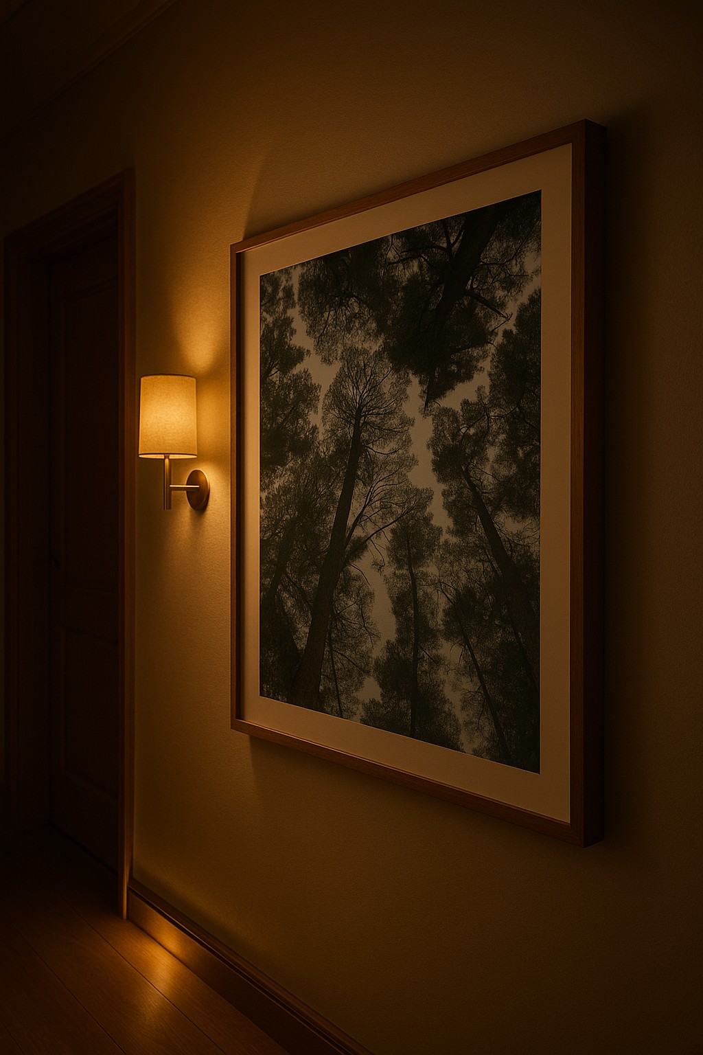 The rich greens, organic textures, and upward perspective create a peaceful, moody atmosphere — perfect for neutral, minimalist, Japandi, coastal, and Scandinavian interiors.