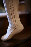 Knit this toe up, short-row heel sock pattern and add a bit of glamour to a practical idea. Knee socks offer an extra layer of warmth underneath jeans or a skirt and with just a bit of simple lace, socks become, well…sexy, even when the thermostat’s turned down.