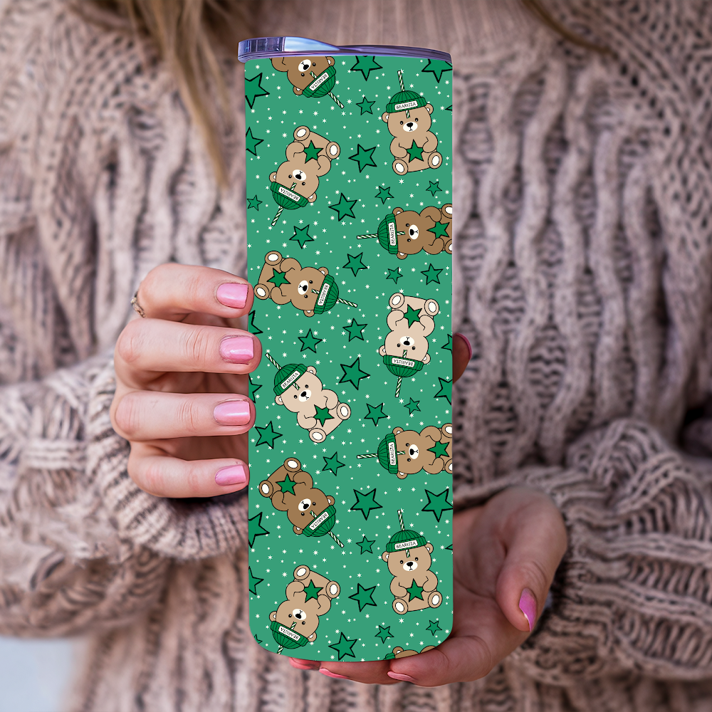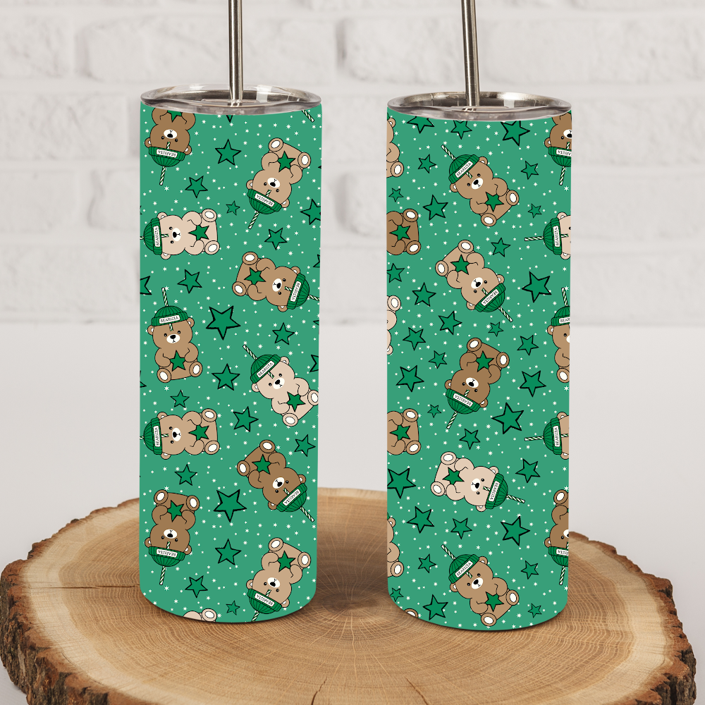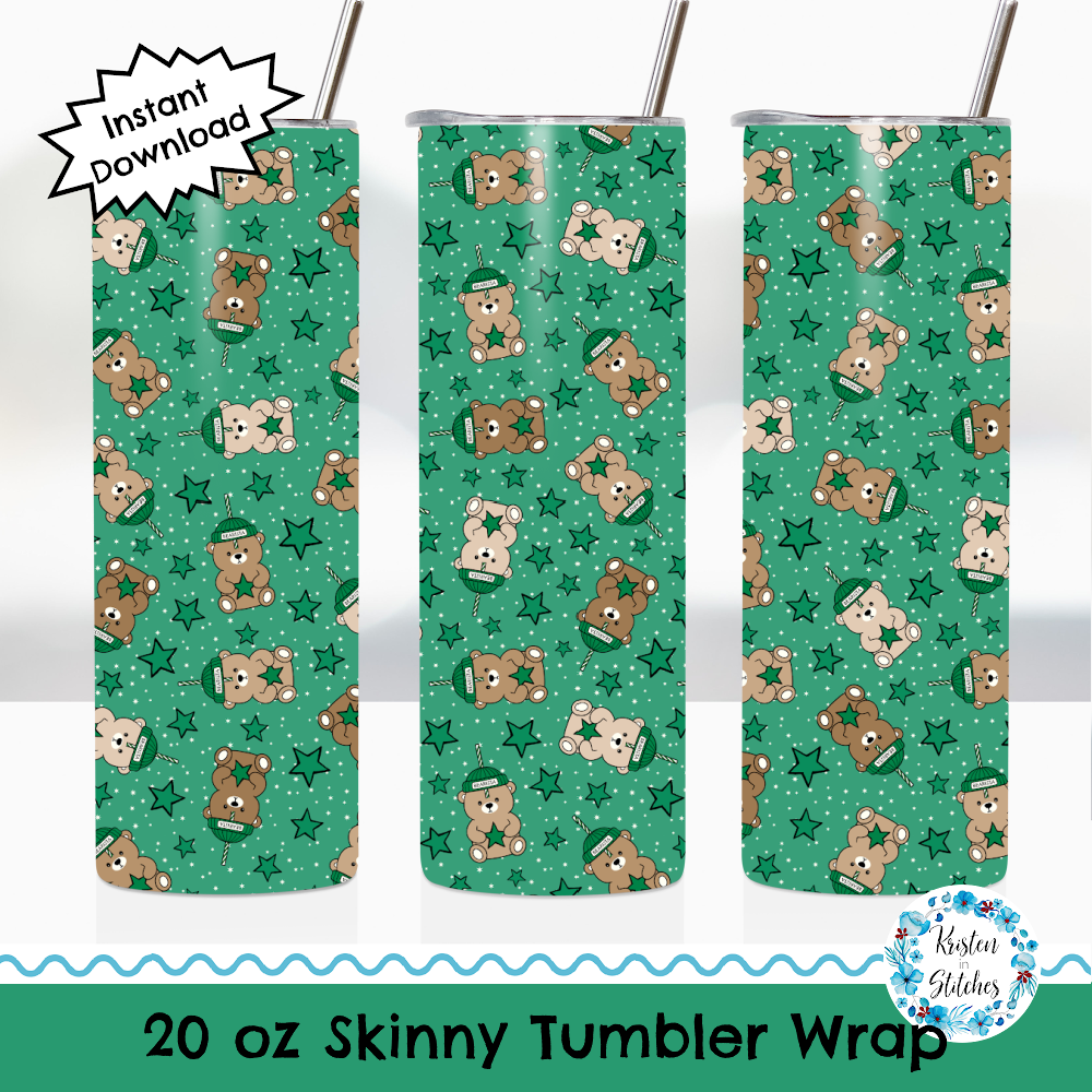 Skinny Tumbler Wrap, 20 oz, Printable Sublimation, Bearista Coffee Cup Bears