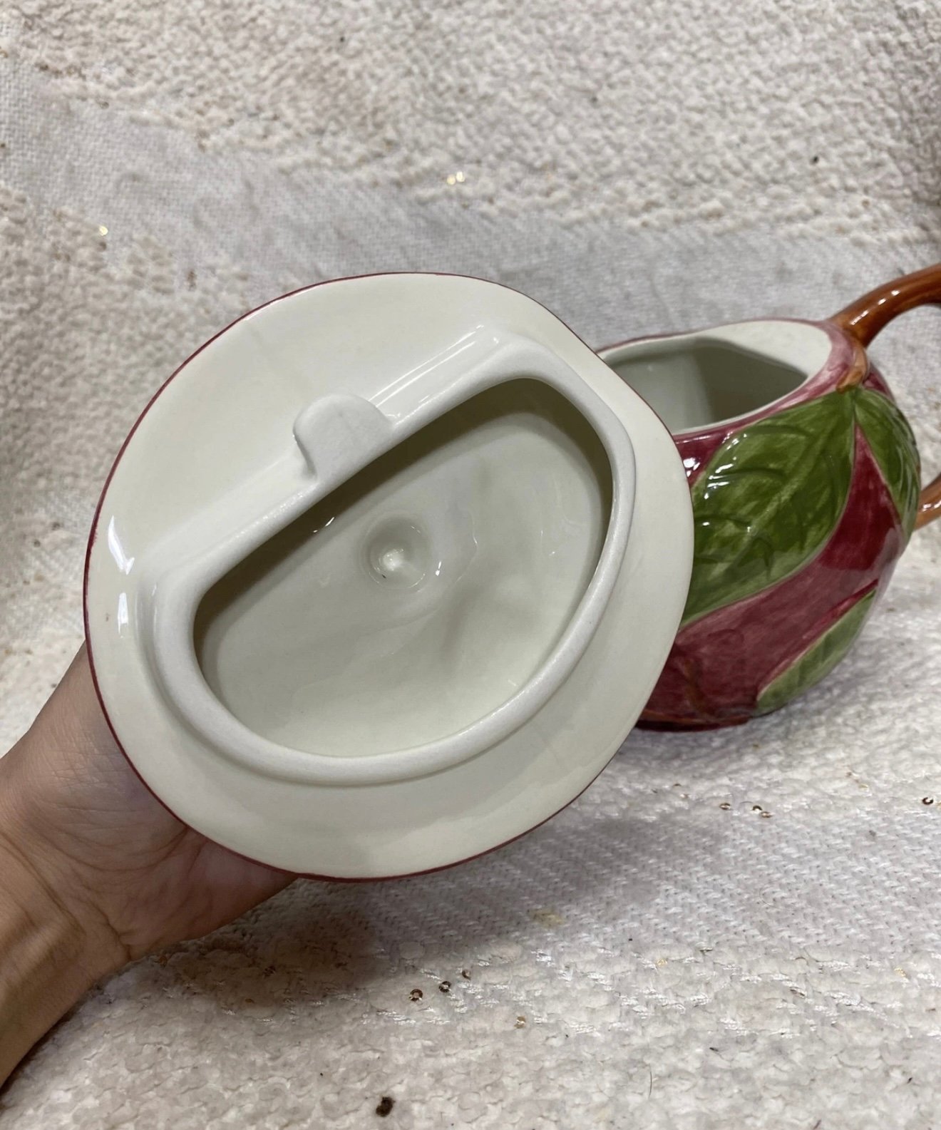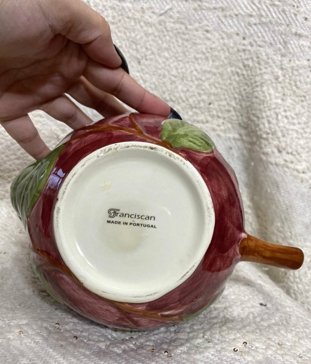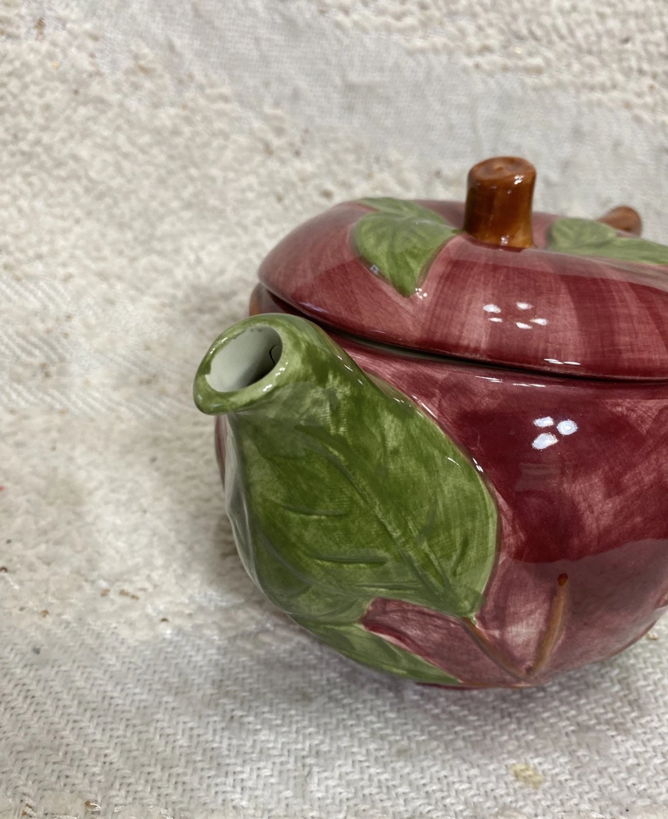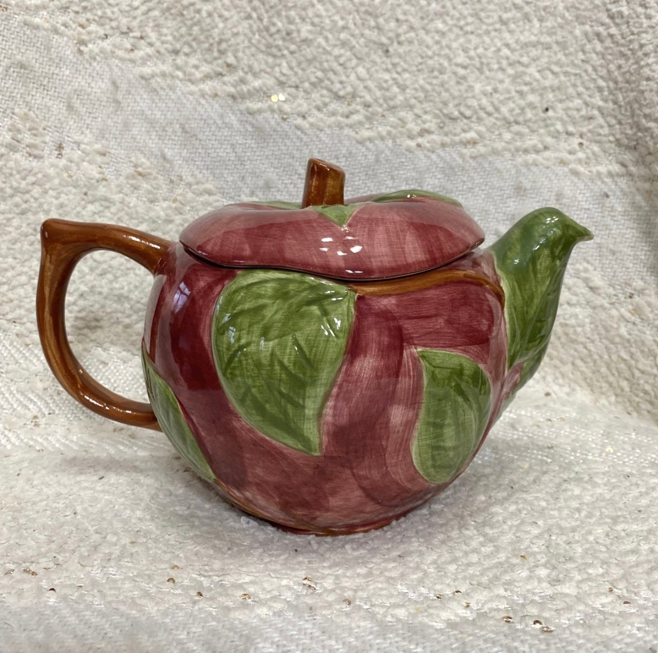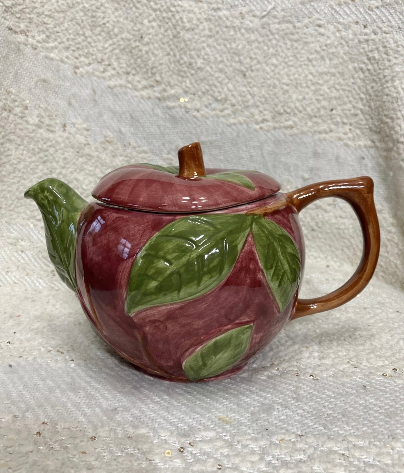 Franciscan apple red/green/brown ceramic teapot.
