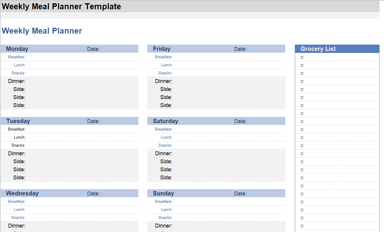 Weekly meal planner.