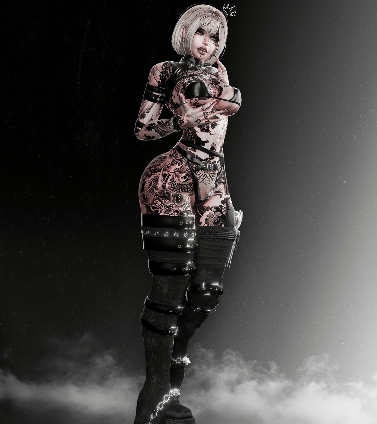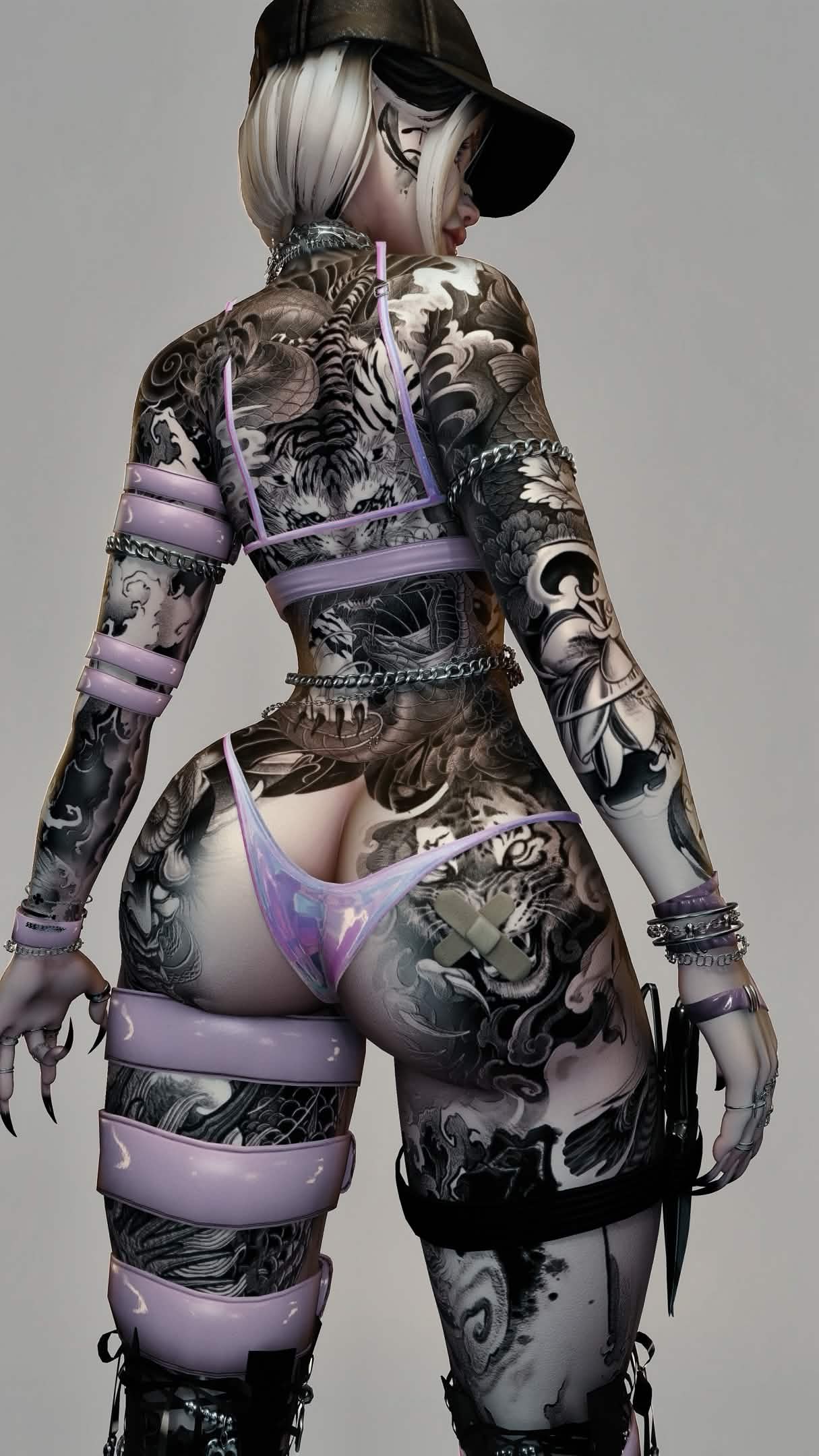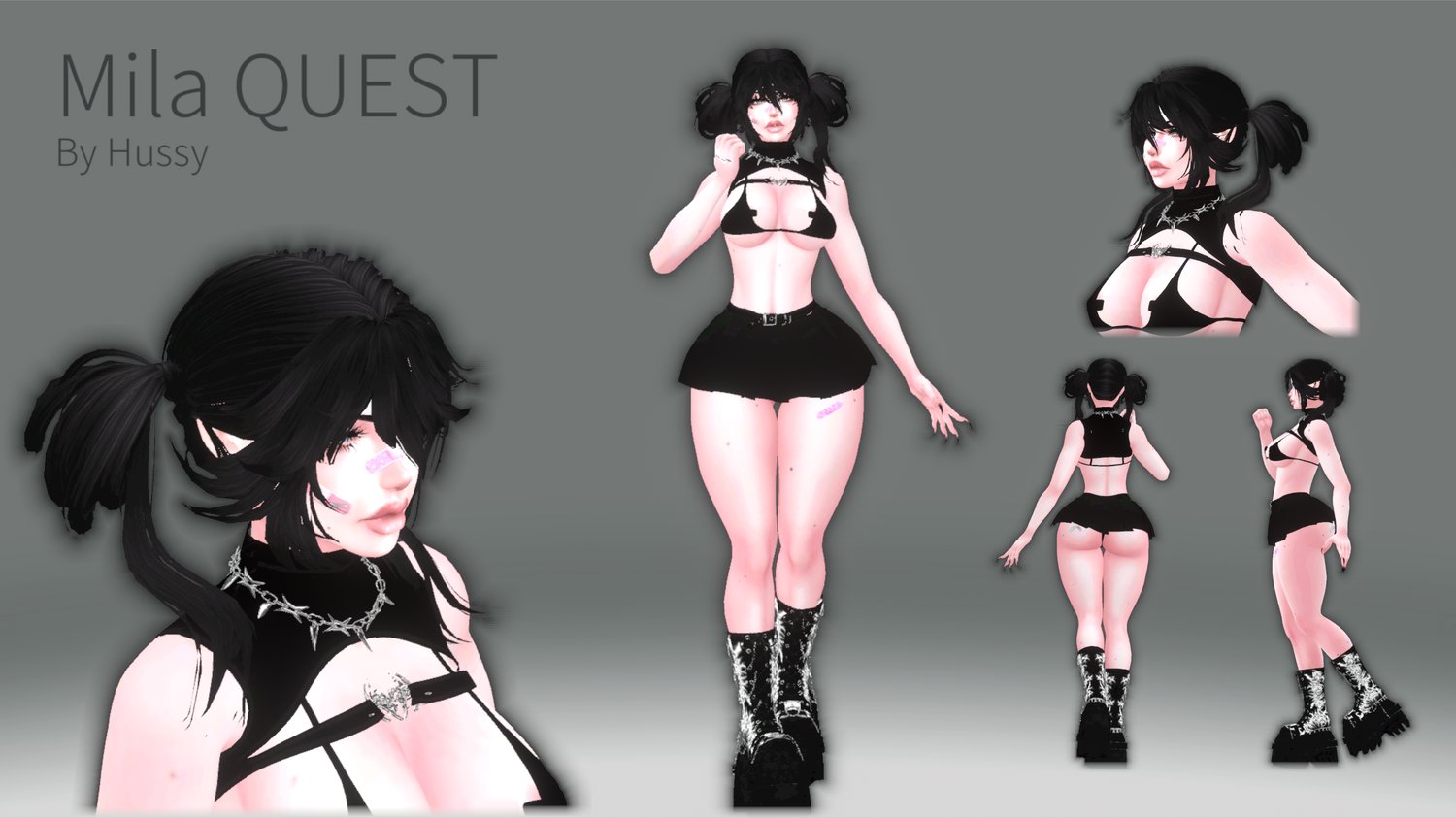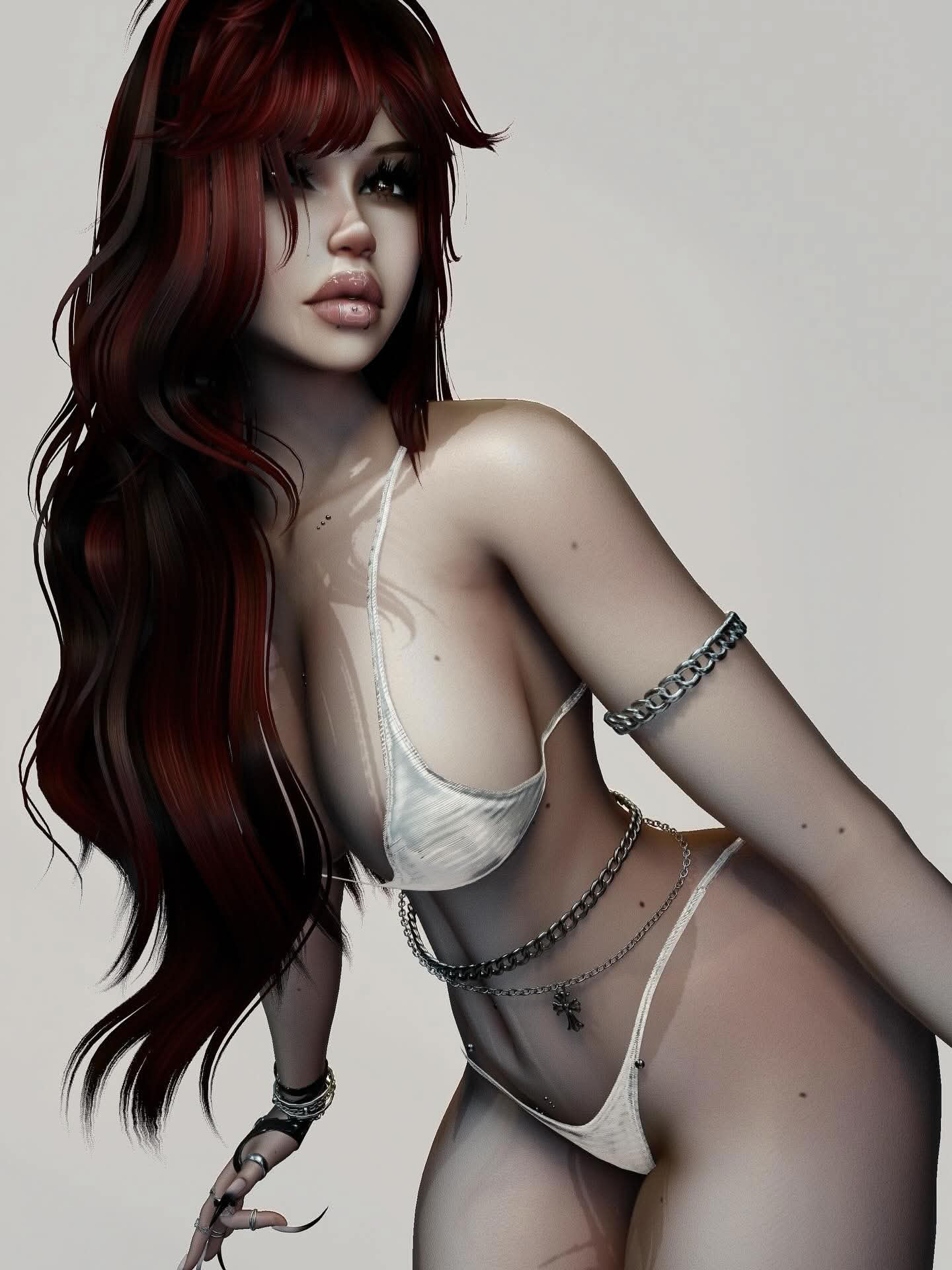 Clothes: Belt Top, Bra, Pasties, Belt Undies, Skirt, Band- Aids, Goth Chain, Face piercings, Mid Goth Stompers, Garter