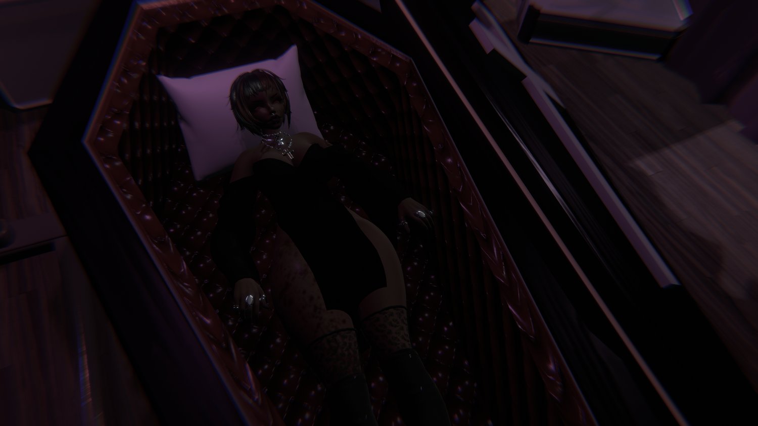 - Accessories and Props: Stickers and Belt by TheThiccWitch, Stethoscope by KuudereKitten, Gem Rings, Necklace, and Bracelets by Heaven, Cross Necklace and Choker by Electric Cherry, Medical Mask by Bruce, Syringe Garter by Moonlight Peach, Bloodbag Follower and Flow Toys by BM's Box