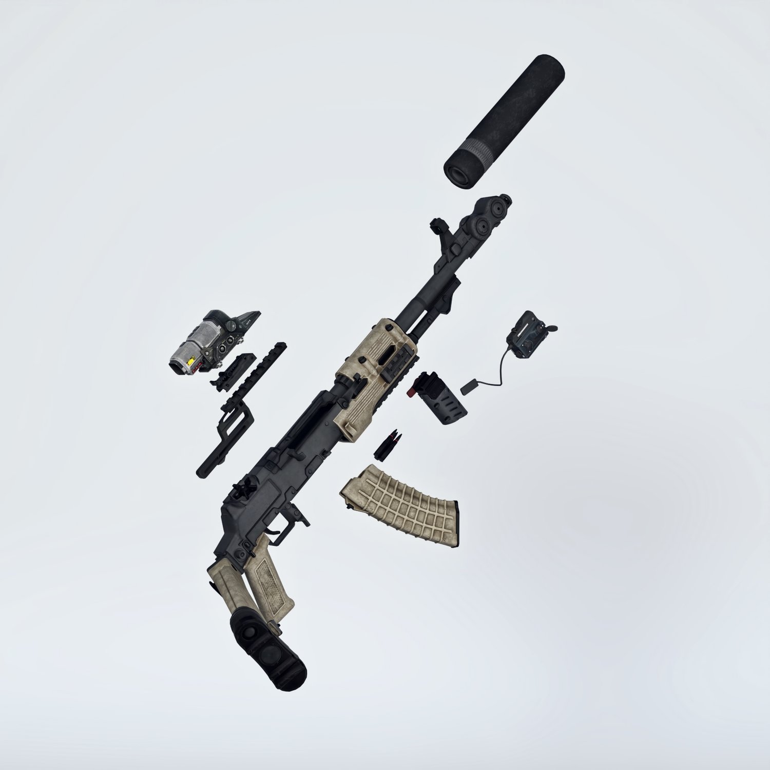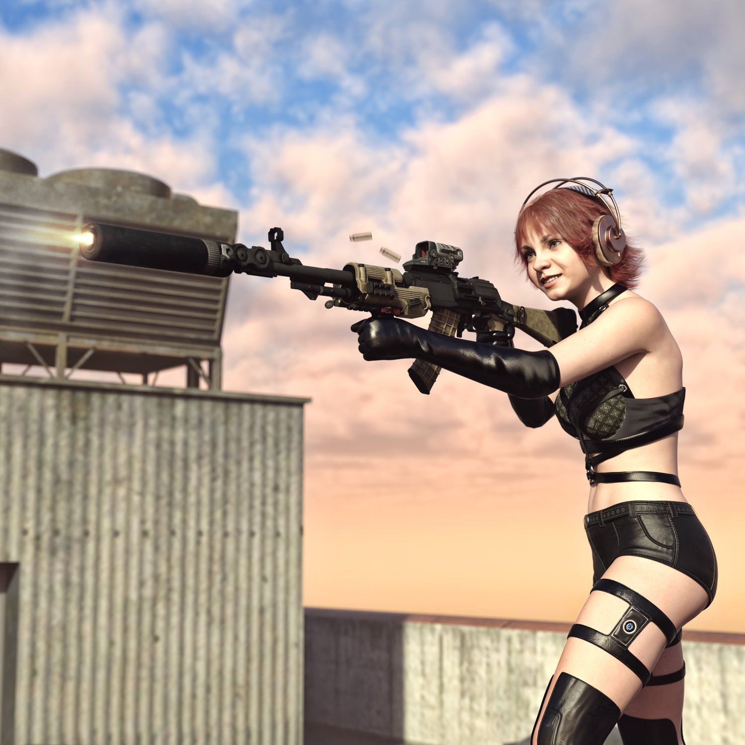 A futuristic variant of a popular combat rifle, rigged and converted for use with DAZ. Trigger, safety, bolt, silencer, etc also rigged for more realistic pictures. The rifle is not made for a silencer, but i included it anyway. Maybe less realistic, but cool looking, in case you want that. Includes an optic, a rails for the optic, front grip, laser and silencer.