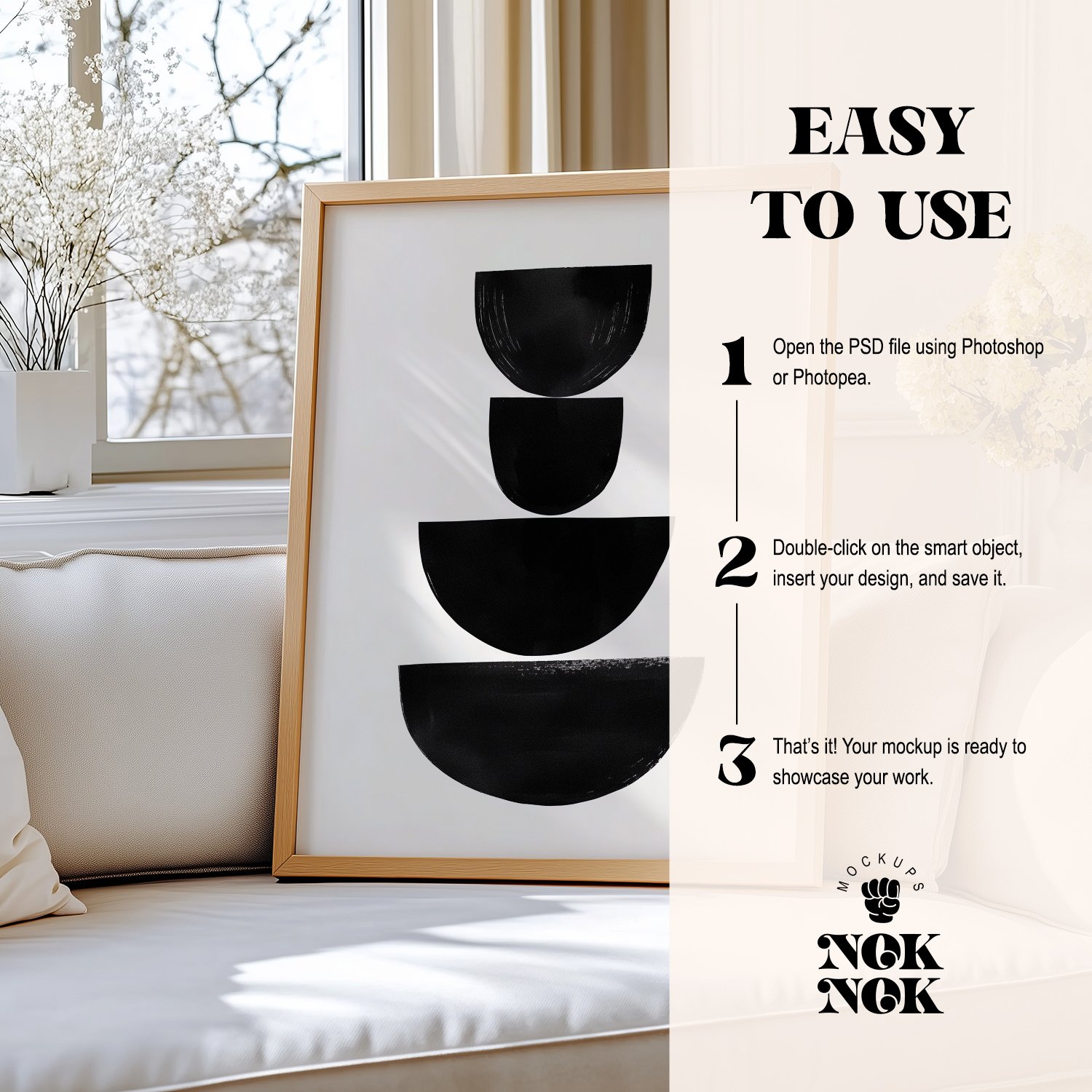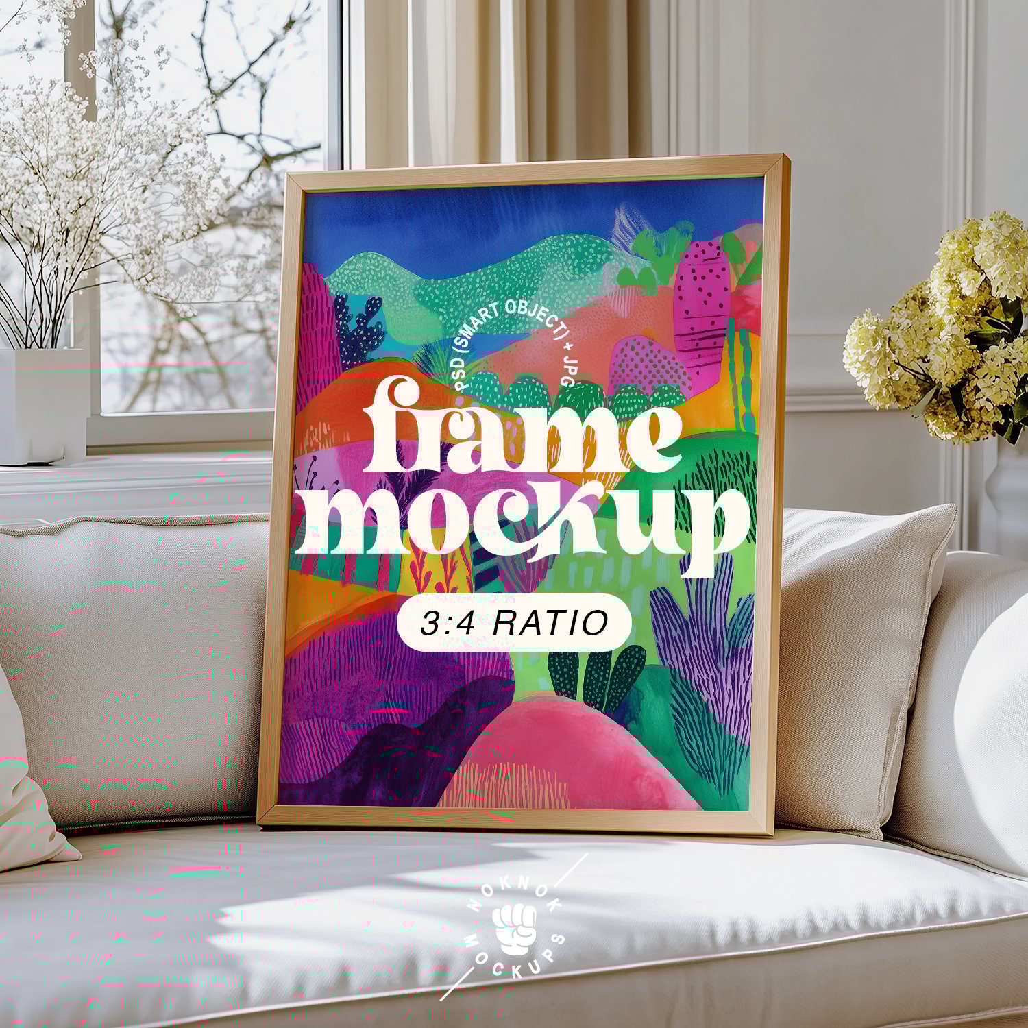 Vertical Frame Mockup, Living Room Frame Mockup, 3:4 Ratio Frame Mockup, PSD with Smart Object + JPG