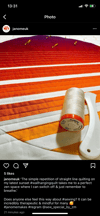 This quilt has corner sleeves on the back, so you can easily hang it with a 20” wooden dowel (from your local hardware shop)