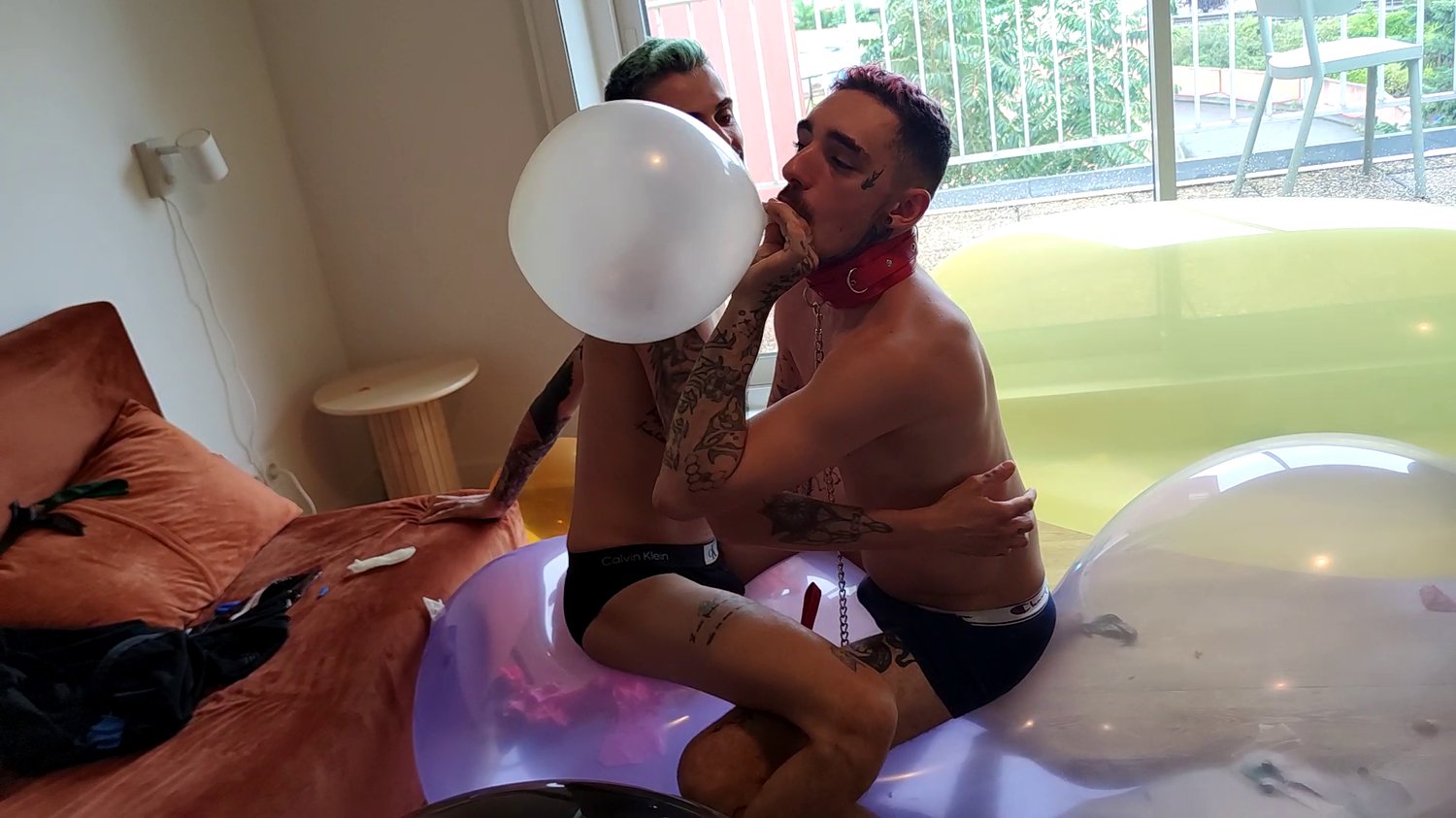 For this video Théo and Lucas have giant balloons to burst.