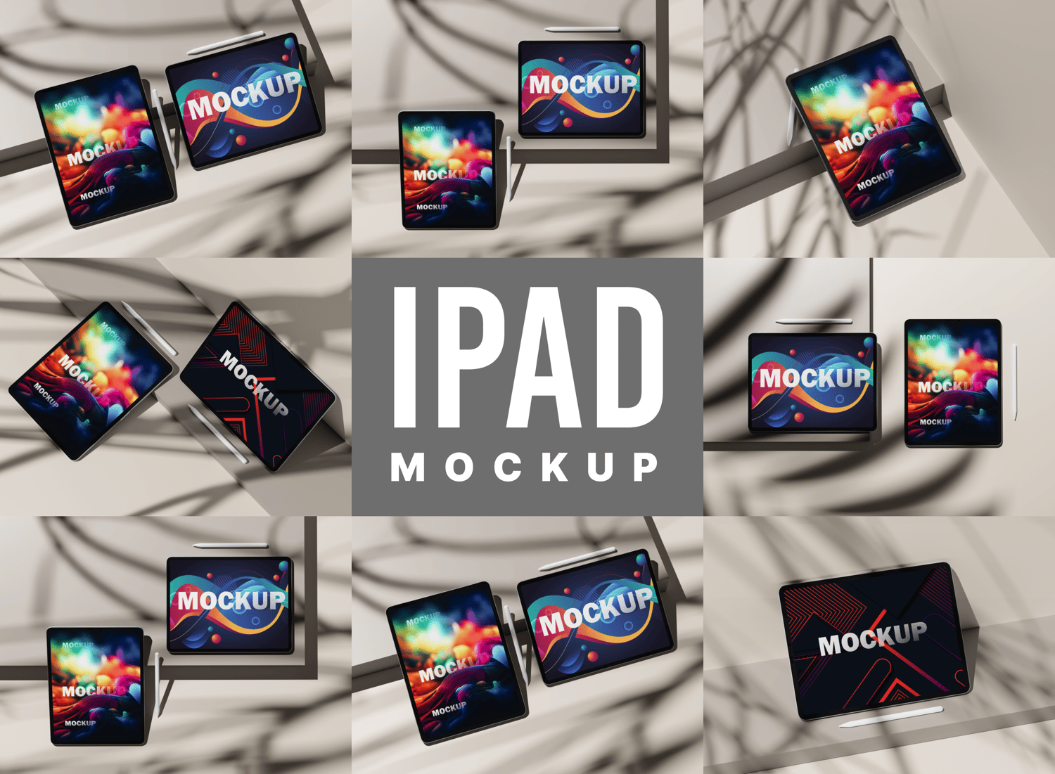Apple device mockups bundle for application use, web design that contains multiple scenes in different angles. Devices with customizable colours, shadows and smart objects. You can use it for social media posts like Instagram to spice up your portfolio on your website, or for Behance and Dribbble projects. Also can be used for printing due to high resolution.