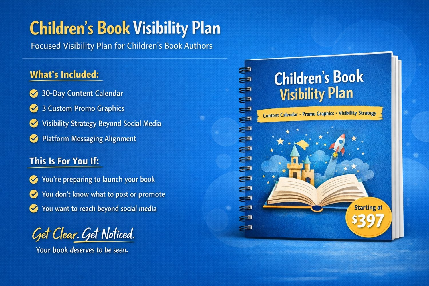 This visibility setup is designed specifically for children’s book authors who want to show up with clarity before or after their book launch, without guessing what to post or how to promote.