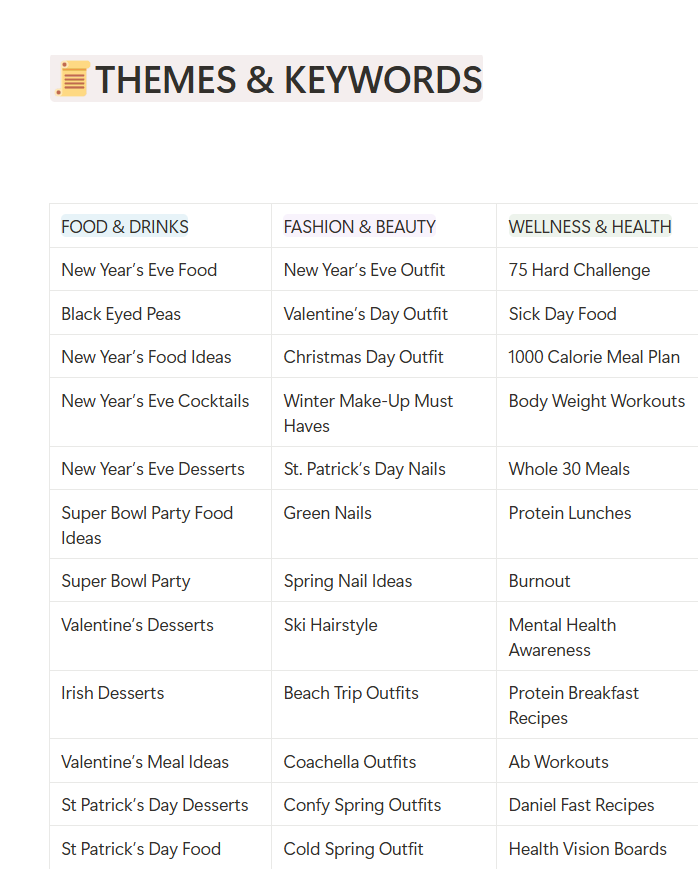 - Top categories: 🍰 Food, 👗 Fashion, 🧘 Wellness, ✈️ Travel