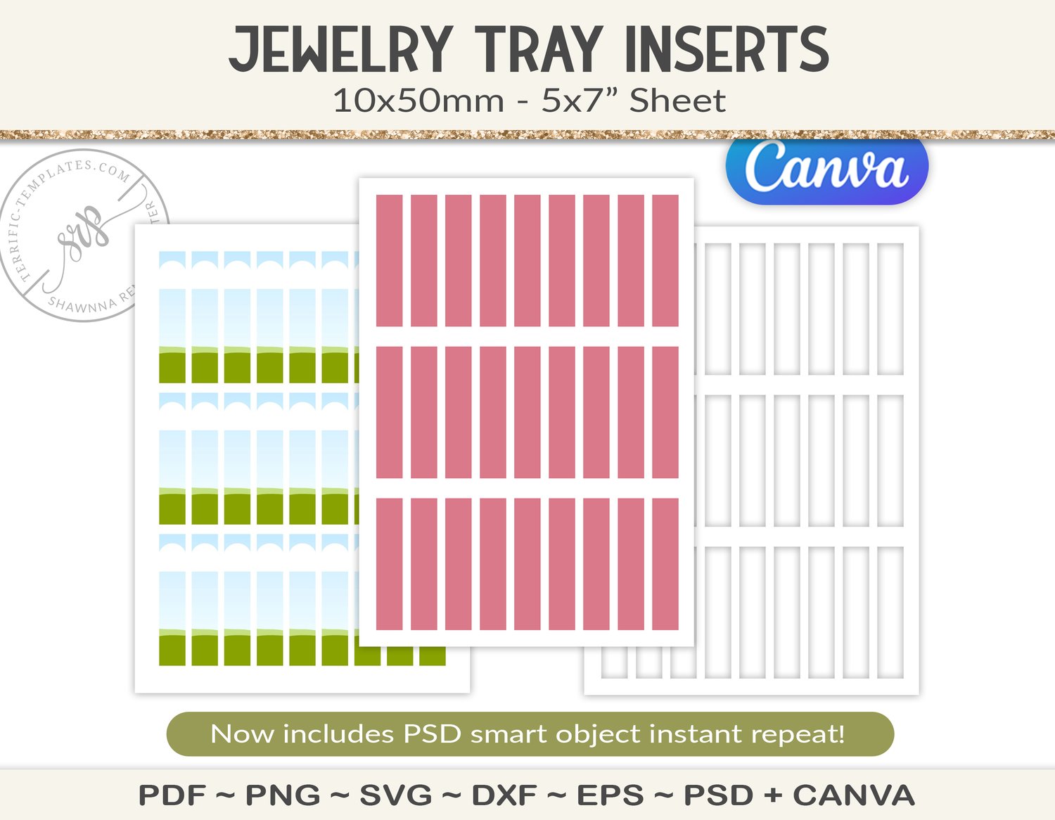 10x50mm rectangle jewelry tray insert template (J26)