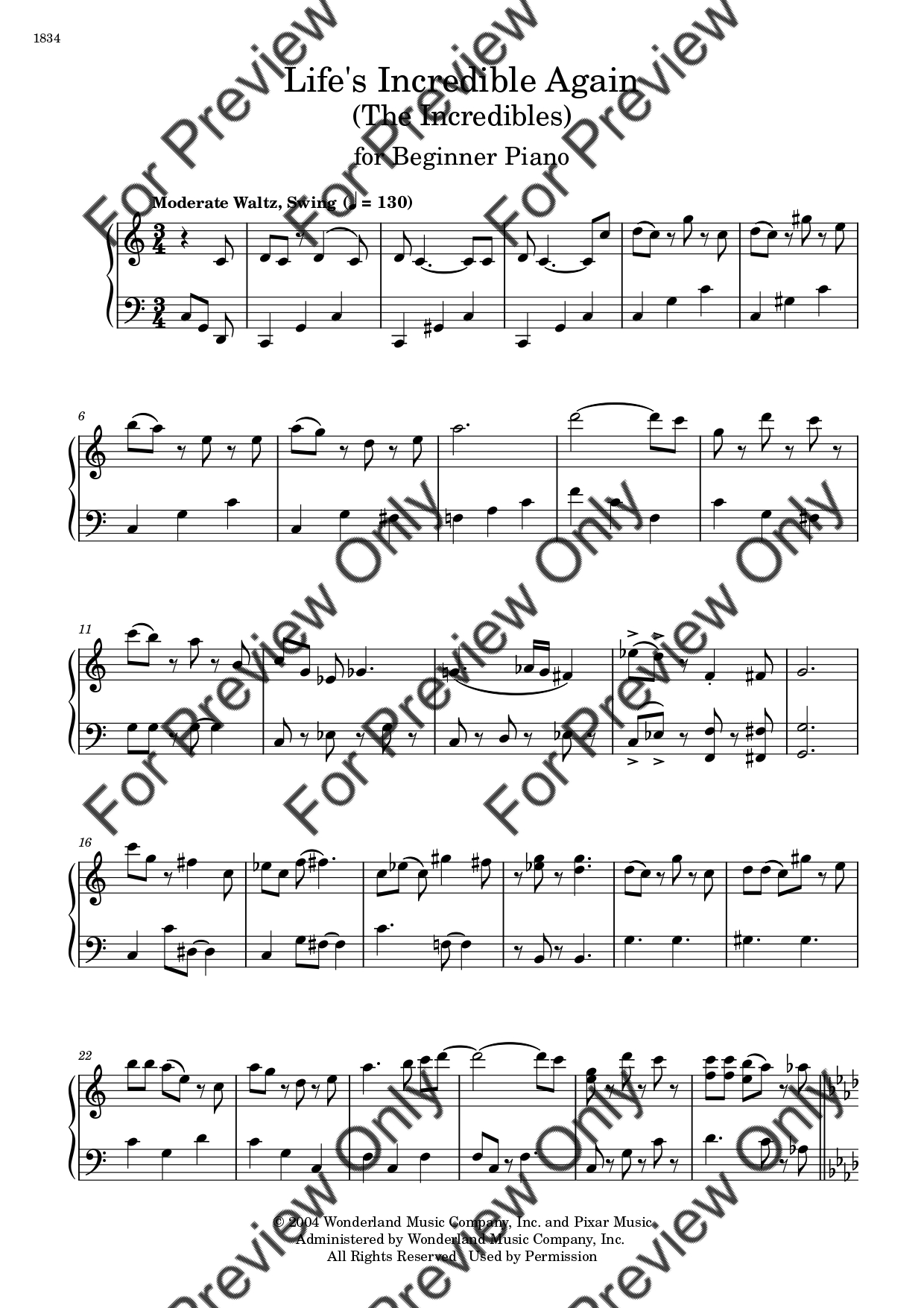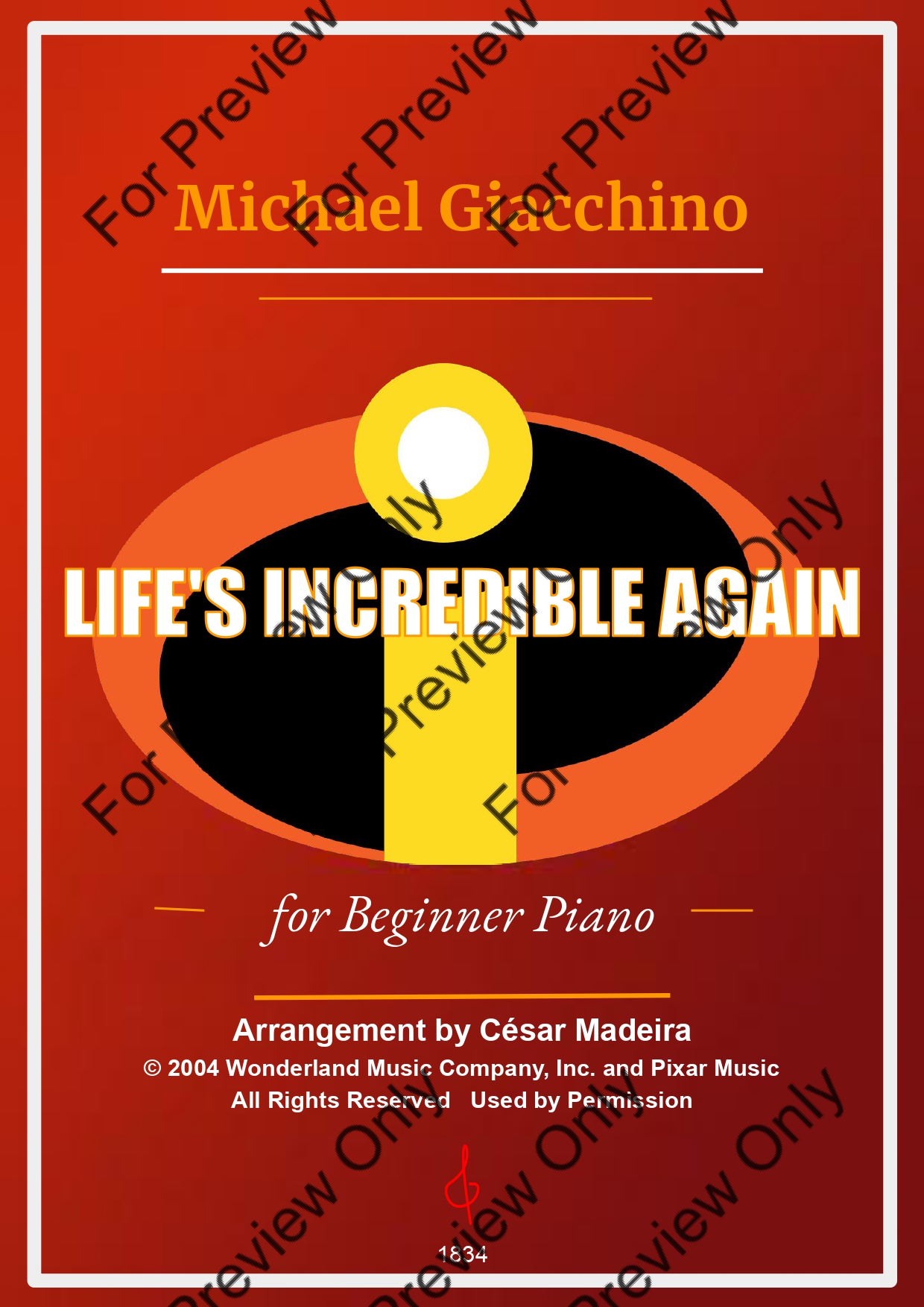 Life's Incredible Again from The Incredibles by Michael Giacchino. Arrangement for Beginner/Easy Piano (C Major Key). With Full Score. Have fun!