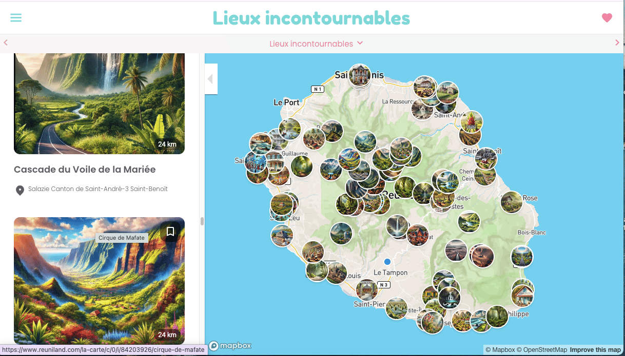 - 🖌️ Détails complets : Chaque point d’intérêt est accompagné d’une description, d’un visuel, et des informations essentielles telles que l’adresse, le site web et le numéro de téléphone.