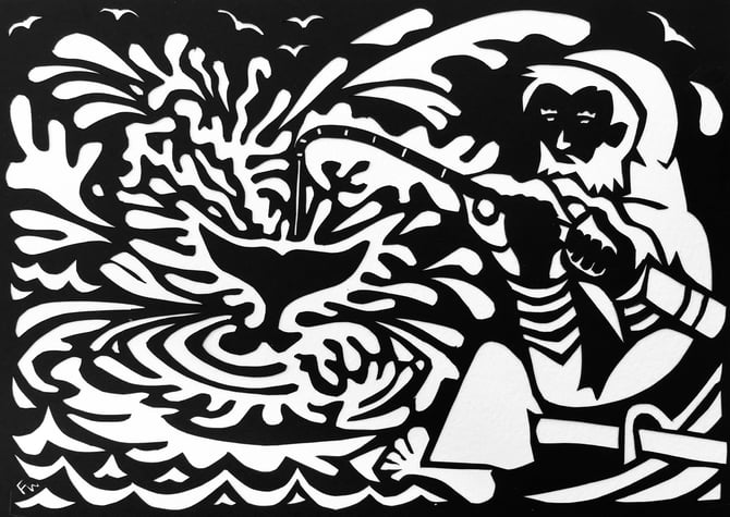 “Once there was a solitary man who fished in the sea. He had tried all his life to avoid any kind of trouble or nuisance – and he had succeeded very well indeed”.