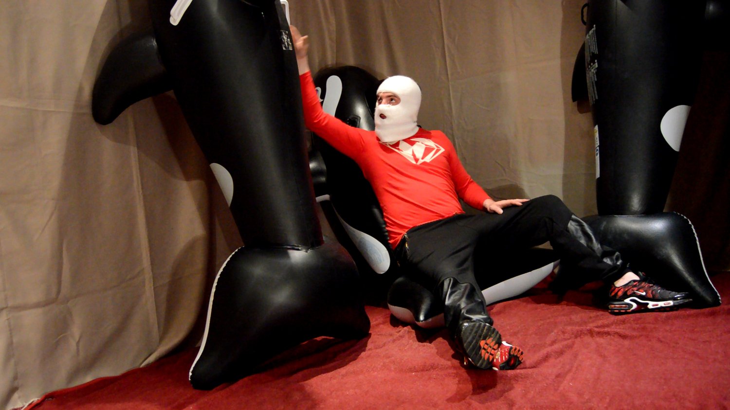 In this video I have 3 inflatable orcas. I decide to puncture and destroy 2 of them and to deflate the last one.
