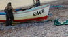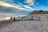 This bright image is looking West on Budleigh Salterton’s stony beach, as some fishermen prepare their boat and gear up. Taken on a cold but crisp afternoon, the sun stayed low in the sky behind a school of dappled clouds.