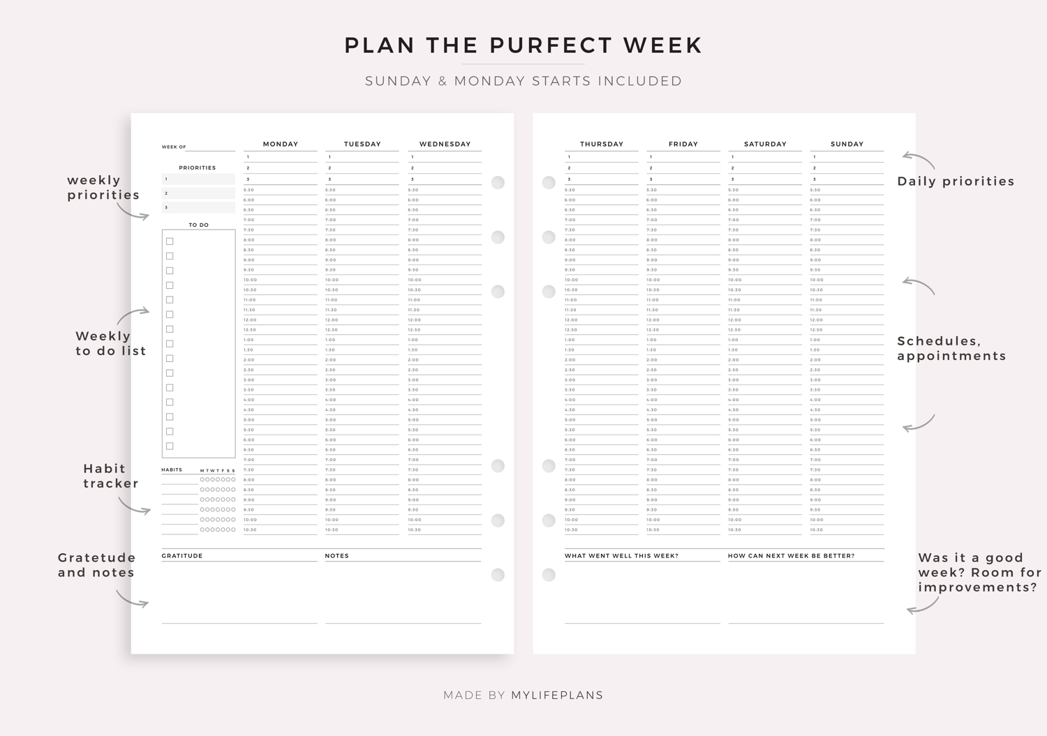 Weekly Hourly Planner, Printable & Fillable, A4/Letter Size