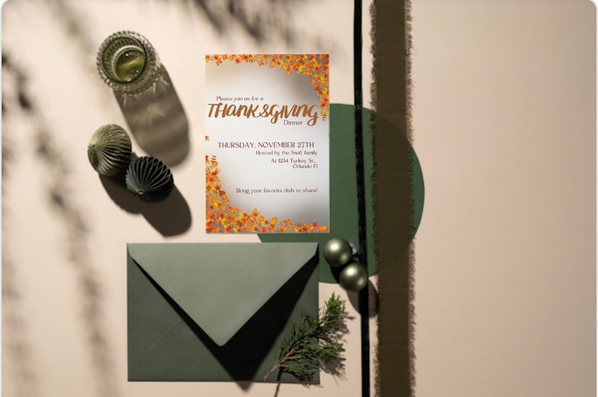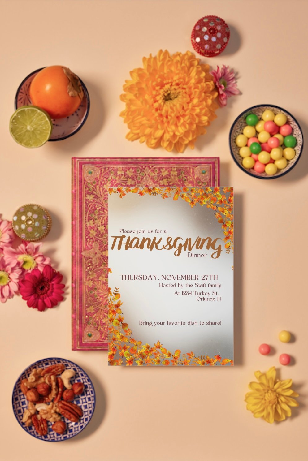 Invite your loved ones to a warm and memorable Thanksgiving feast with this beautiful, easy-to-edit digital invitation.