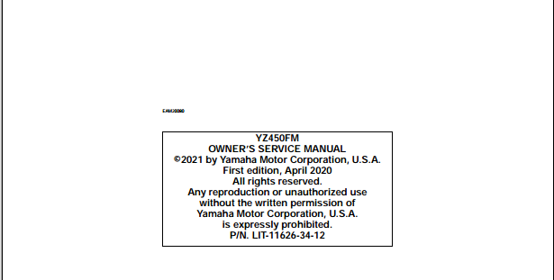 2021 Yamaha YZ450F YZ450FM Owners Service Manual Part No. LIT-11626-34-12