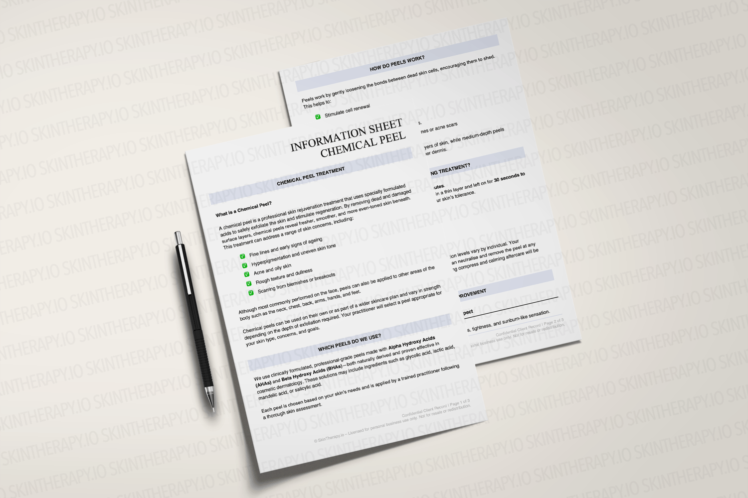 Chemical Peel Treatment Information Sheet | Fillable PDF Client Guide | Aesthetics Clinic Template