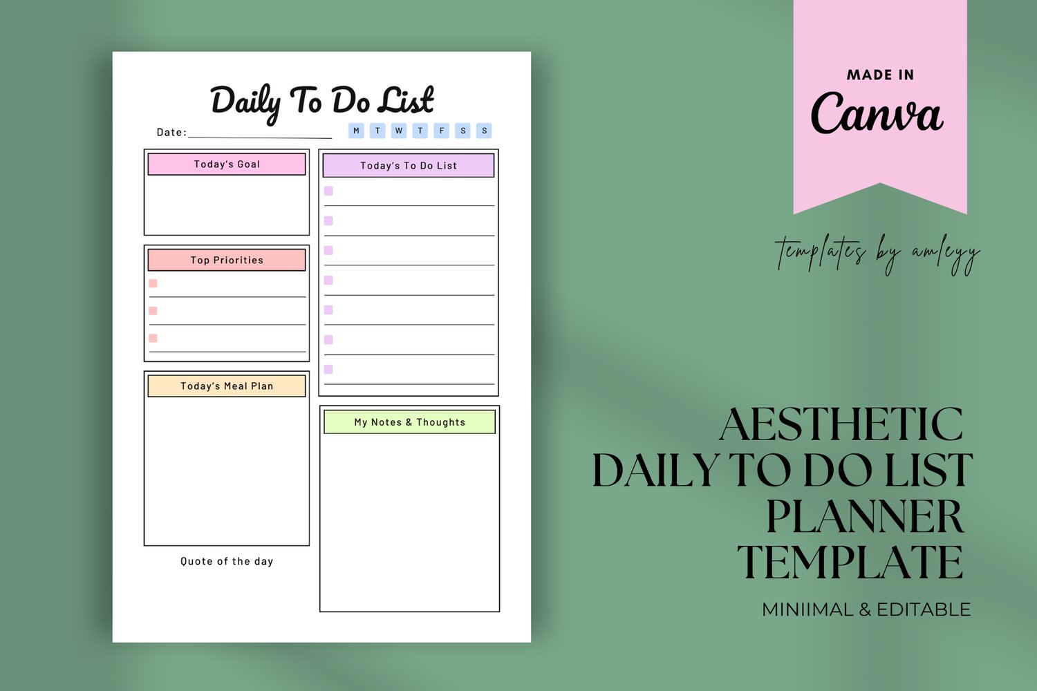 Aesthetic Daily To-Do List Planner Template | Minimalist Canva Editable Productivity Printable