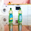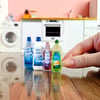 The set includes three types of detergent: dish soap, laundry detergent, and fabric softener, each with its own bottle. All bottles come with functional caps and can be filled*!